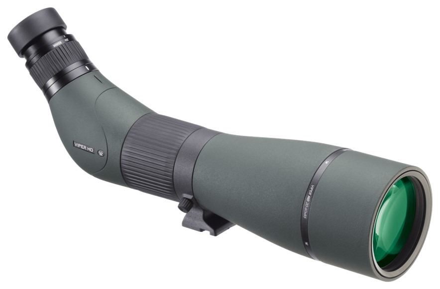 Vortex® manufactures the Viper® HD Spotting Scope with advanced optical technologies and premium components to give you a spotting scope that performs well beyond its cost. The Viper HD utilizes Extra-low dispersion (XD) glass, fully multi-coated XR anti-reflective coatings on all air-to-glass surfaces, and multi-layer dielectric prism coatings to enhance resolution and color fidelity, resulting in crisp, sharp images, while maximize light transmission for clear, bright viewing across the entire optic diameter. Exterior lenses surfaces feature Vortex's ultra-hard ArmorTek® coating to protect against scratches, oil, and dirt. Ultra-smooth, fluid, and sleek helical-style focus, quickly dials in ultra-sharp views, as well as keeps the scope's profile trim for ultimate packability. Eyecups twists up and down and stop at intermediate settings to maximize fit for comfortable viewing with or without eyeglasses. A rotating tripod collar aids in finding your target quickly. The Viper HD Spotting Scope is protected by a rubber armor exterior coating; and features a built-in sunshade to reduce glare and shield the objective lens from rain and snow. The scope is O-ring sealed, and argon gas-purged for 100 percent waterproof/fog-proof dependability. Choose from angled body design for an overall lower mounting height, compatible with smaller, lighter tripods; or straight body design for fast target acquisition, and compatibility with car window mounts. Covered by VIP Unconditional Lifetime Warranty.