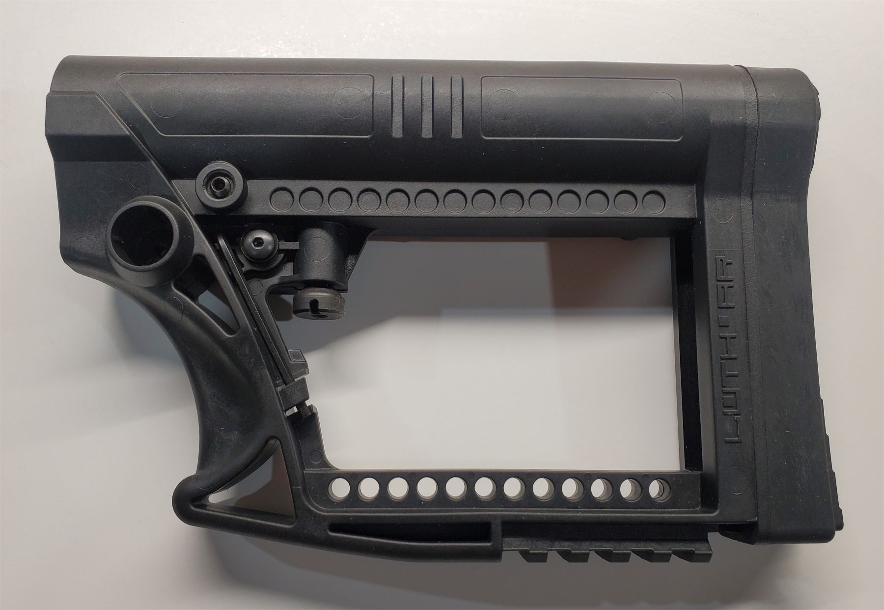 The MBA-4 is a direct replacement, standard adjustable carbine buttstock without additional Length-of-Pull or Cheek rise in a lightweight, strong and high-quality design. The MBA-4 requires a Carbine buffer tube, either Mil-Spec or Commercial.