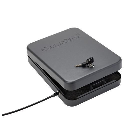 The SnapSafe Lock Box provides secure storage for handguns and other valuables at home, on a nightstand, in the car or when traveling. The included heavy steel cable secures the Lock Box to any stationary object, car seat or the internal frame of a piece of luggage. The Lock Box also provides security for Conceal Carry Permit holders.