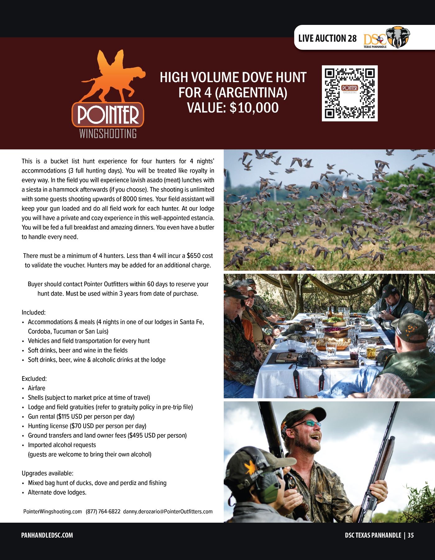 Lot 28 HIGH VOLUME DOVE HUNT FOR 4 W/ POINTER OUTFITTERS (ARGENTINA)