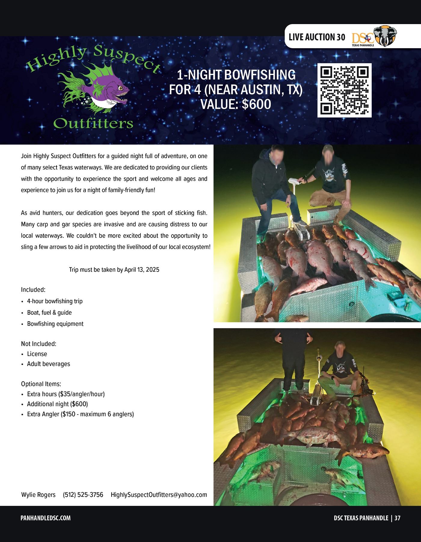 Lot 30 BOWFISHING FOR 4 W/ HIGHLY SUSPECT OUTFITTERS (NEAR AUSTIN, TX)