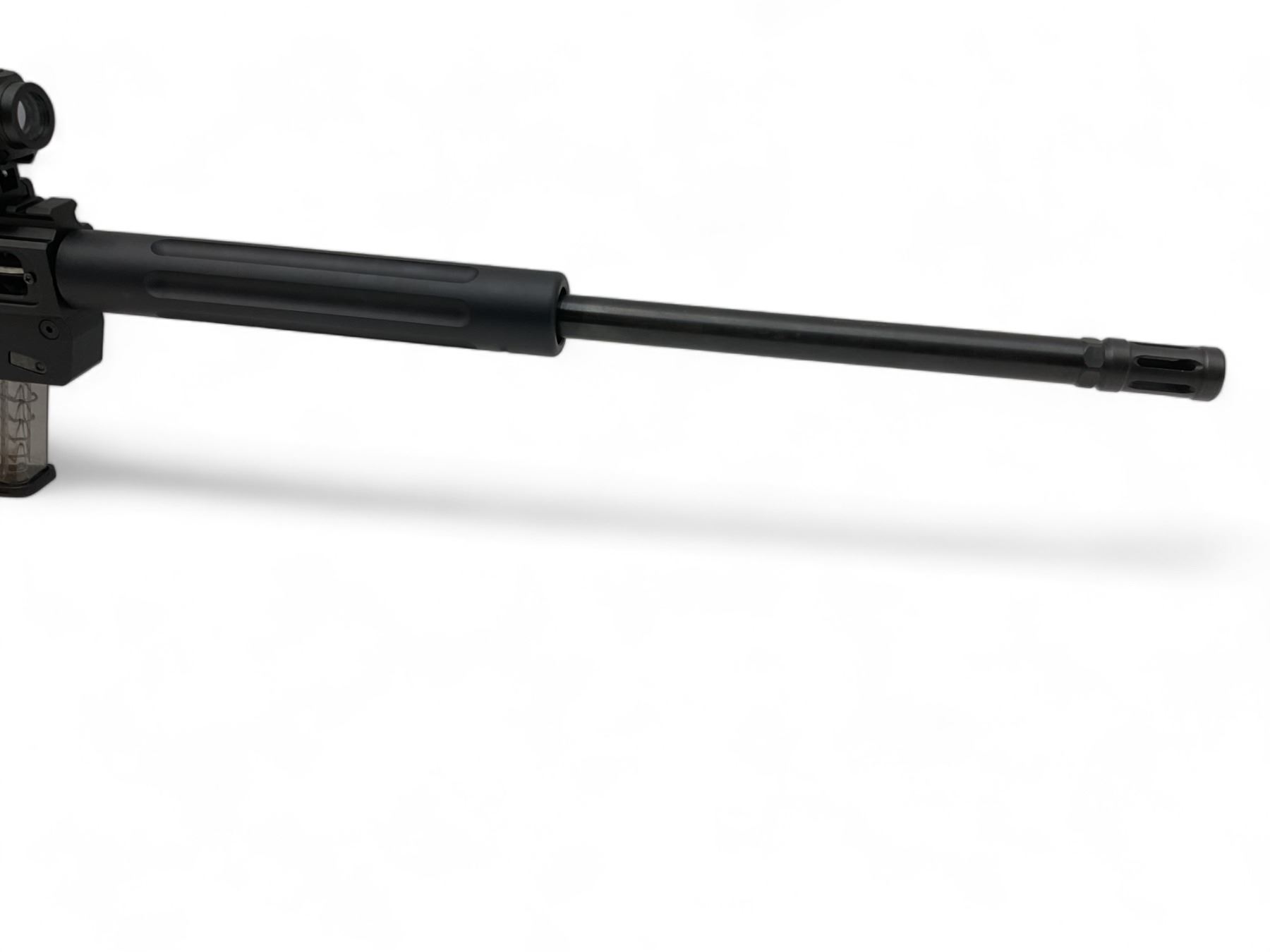 JR Carbine Take Down Semi Auto Rifle 9MM 18.6" Threaded Barrel Black With CT Red Dot. Comes with one removable magazine. Adjustable stock, threaded barrel comes with flash hider. This is a non-restricted firearm.