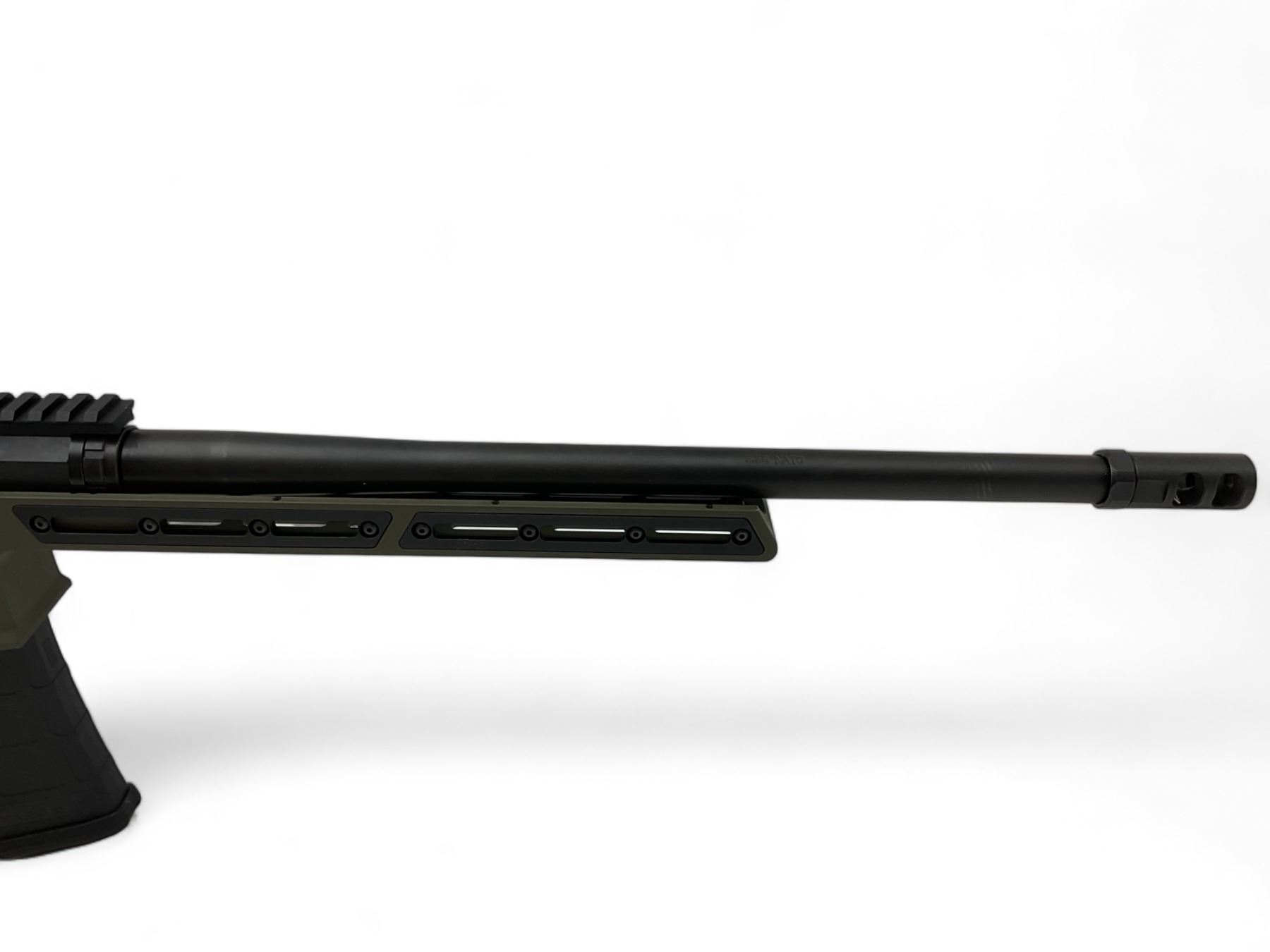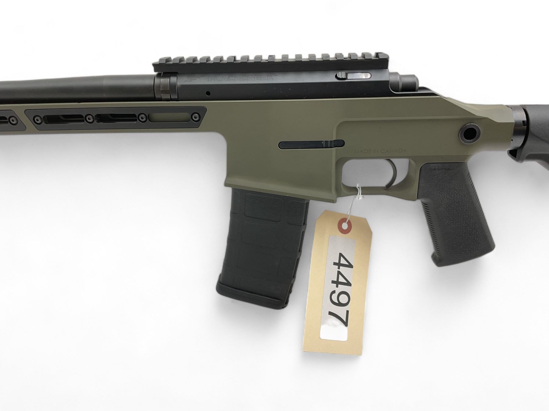 Black Creek Labs MRX Bison Ranger Bolt Action Rifle 5.56 NATO 16" Barrel ODG Green. Includes one detachable magazine. Adjustable rear stock; rear stock has damage. Receiver drilled and tapped with rail installed. Threaded barrel with brake installed. This is a non-restricted firearm.