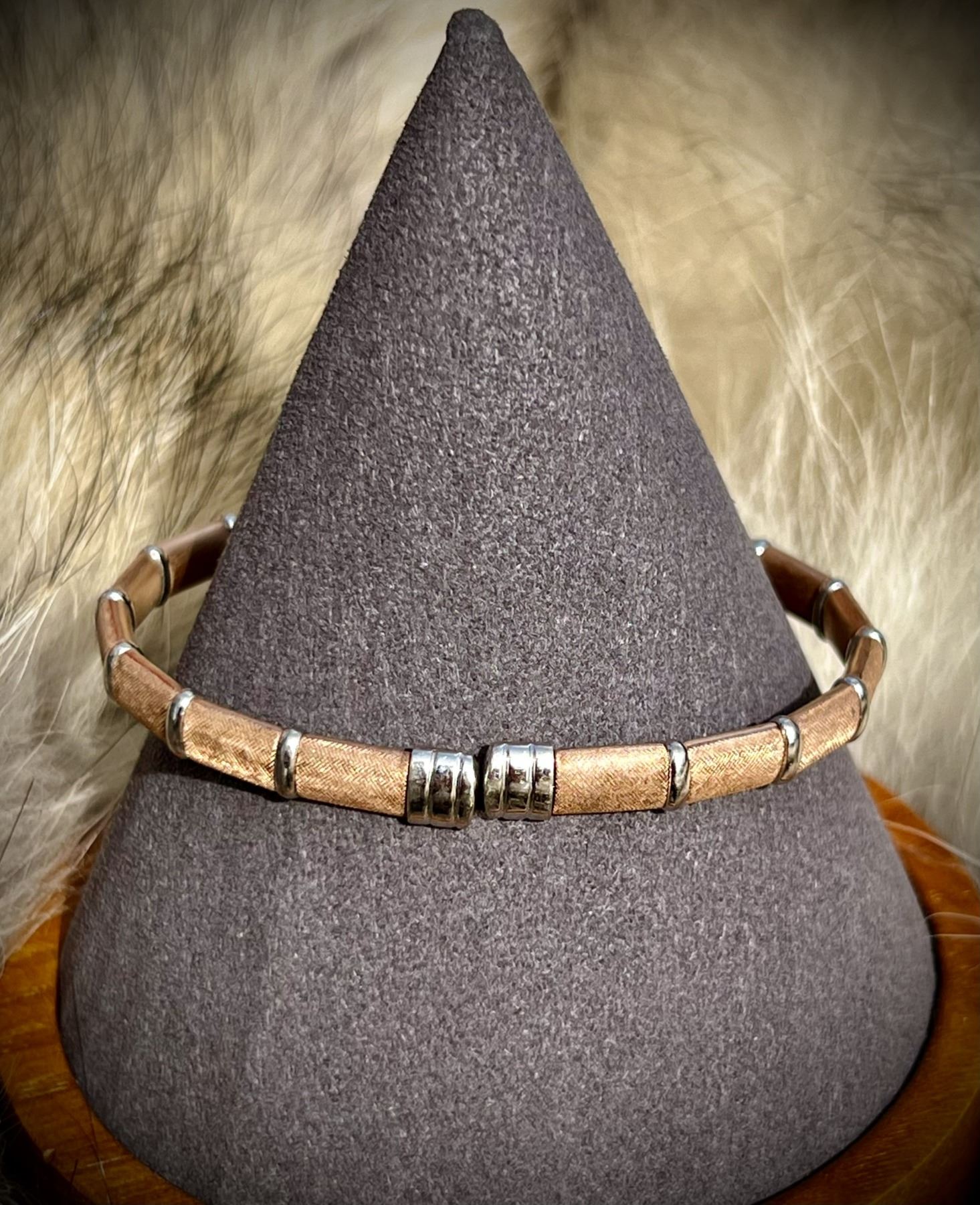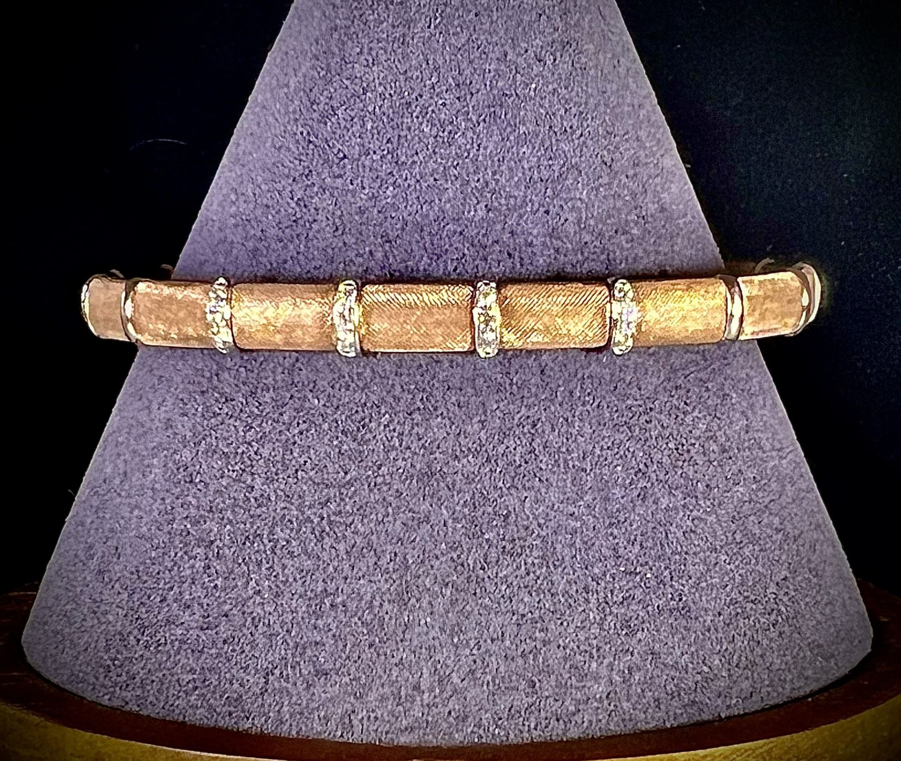 Lot 26 Rose Gold, Sterling Silver and Diamond Bangle Bracelet with Florentine Finish