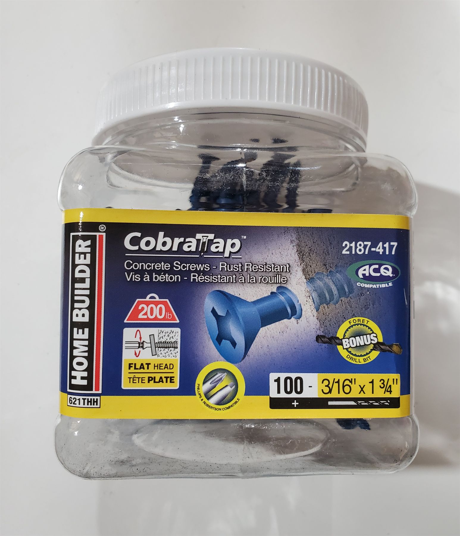 CobraTap rust resistant concrete screws. Philips and Robertson compatible, includes drill bit.