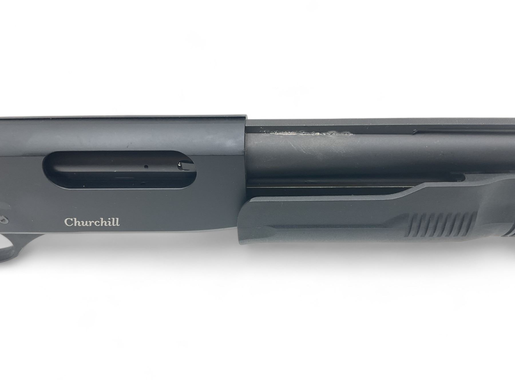Churchill Pump Action Shotgun 20Ga 3" Chamber 26" Vent Rib Barrel Synthetic Stock, New. Comes with a removable choke. Bead sight, comes with sling mounts. This is a non-restricted firearm.