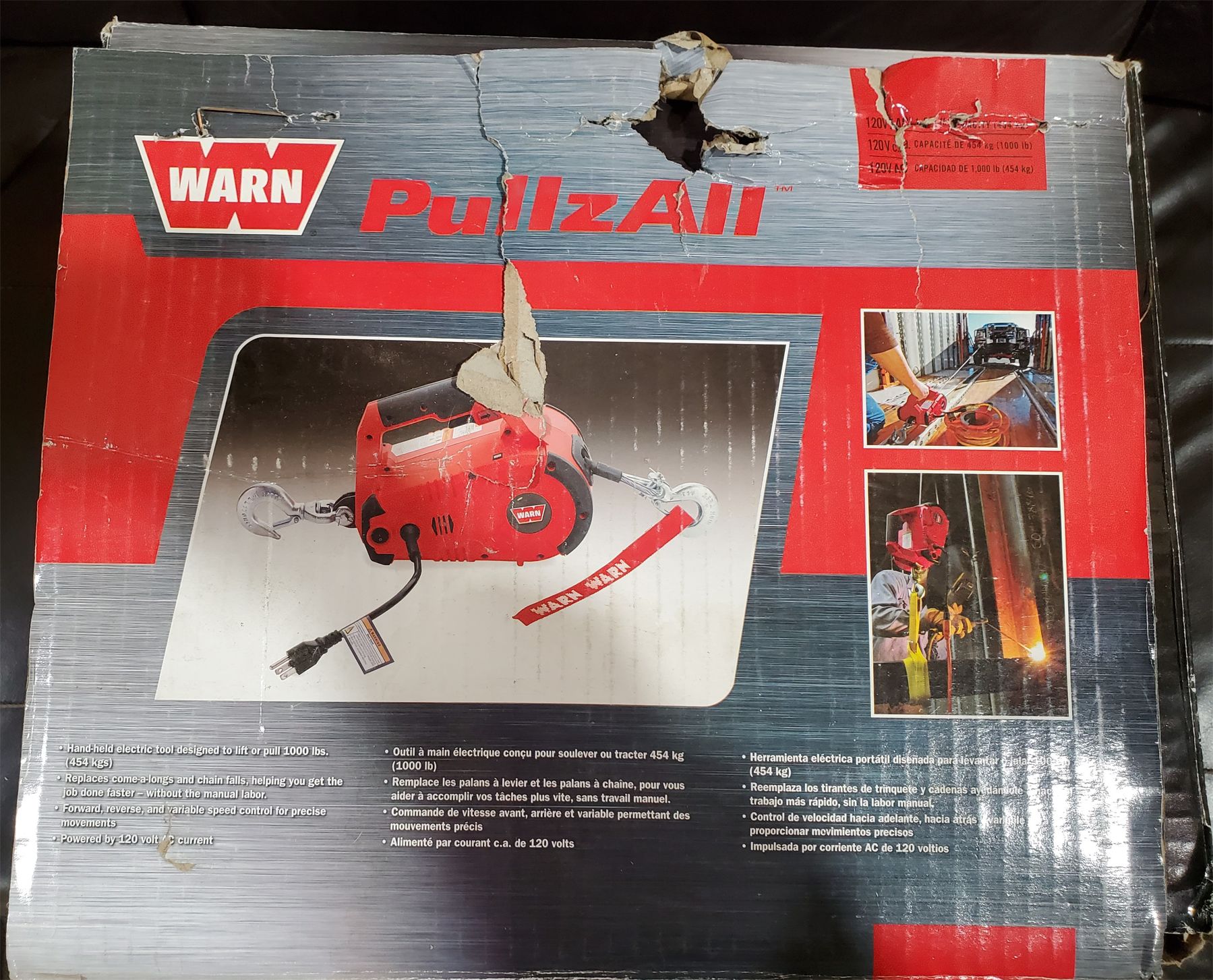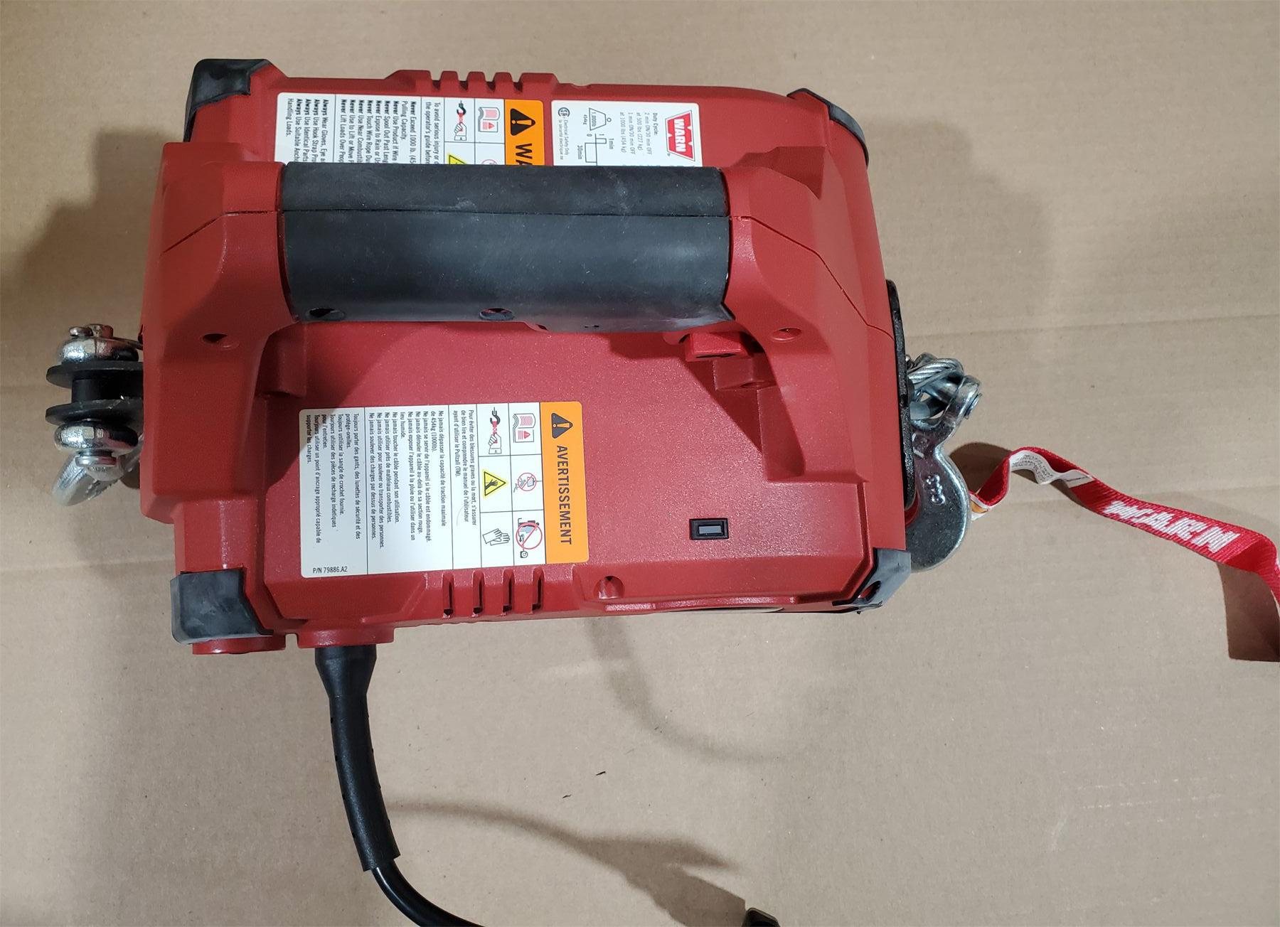 Handheld electric winch rated to pull 1000 Ibs (454kgs). No batteries, powered by extension chord. Barely used and fully functional.