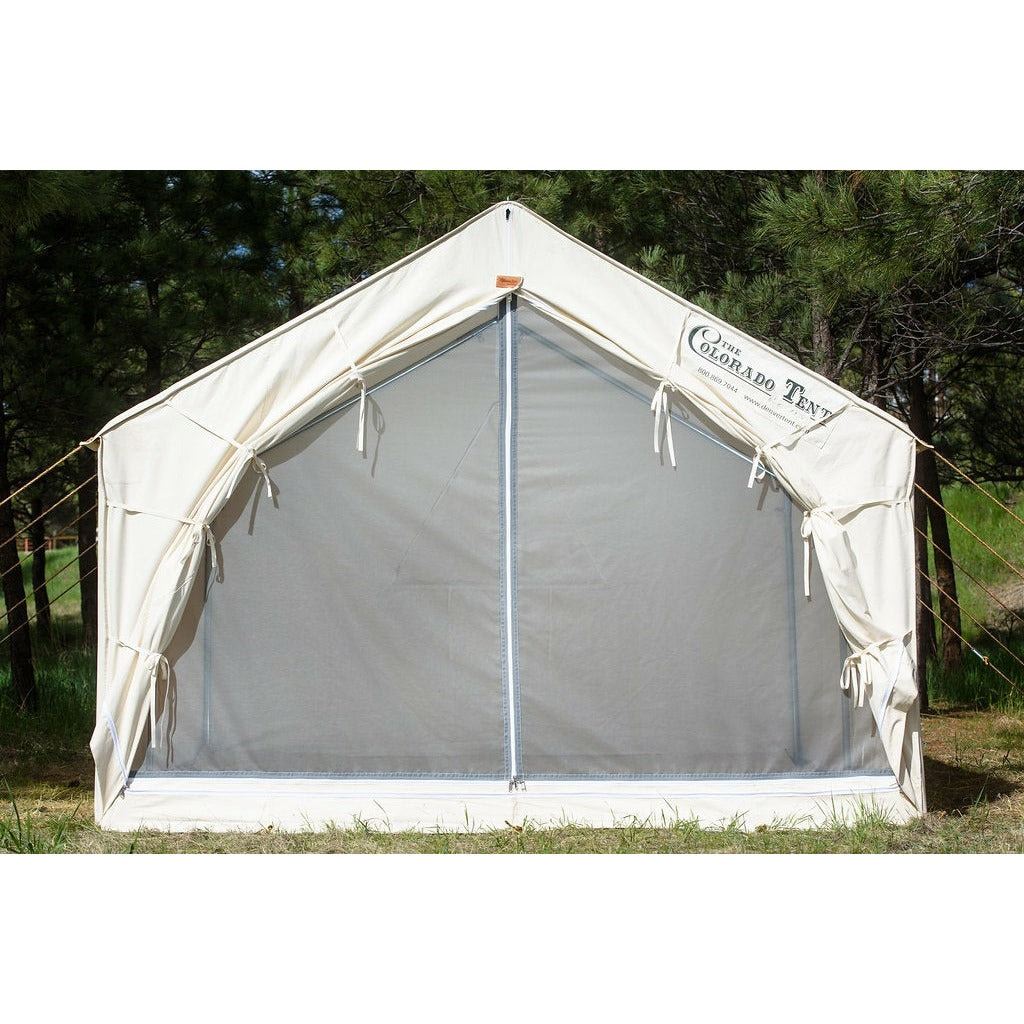 12x14 10.10 oz Army Duck Canvas Colorado Tent with frame, stakes, and ropes, from The Colorado Tent Company.