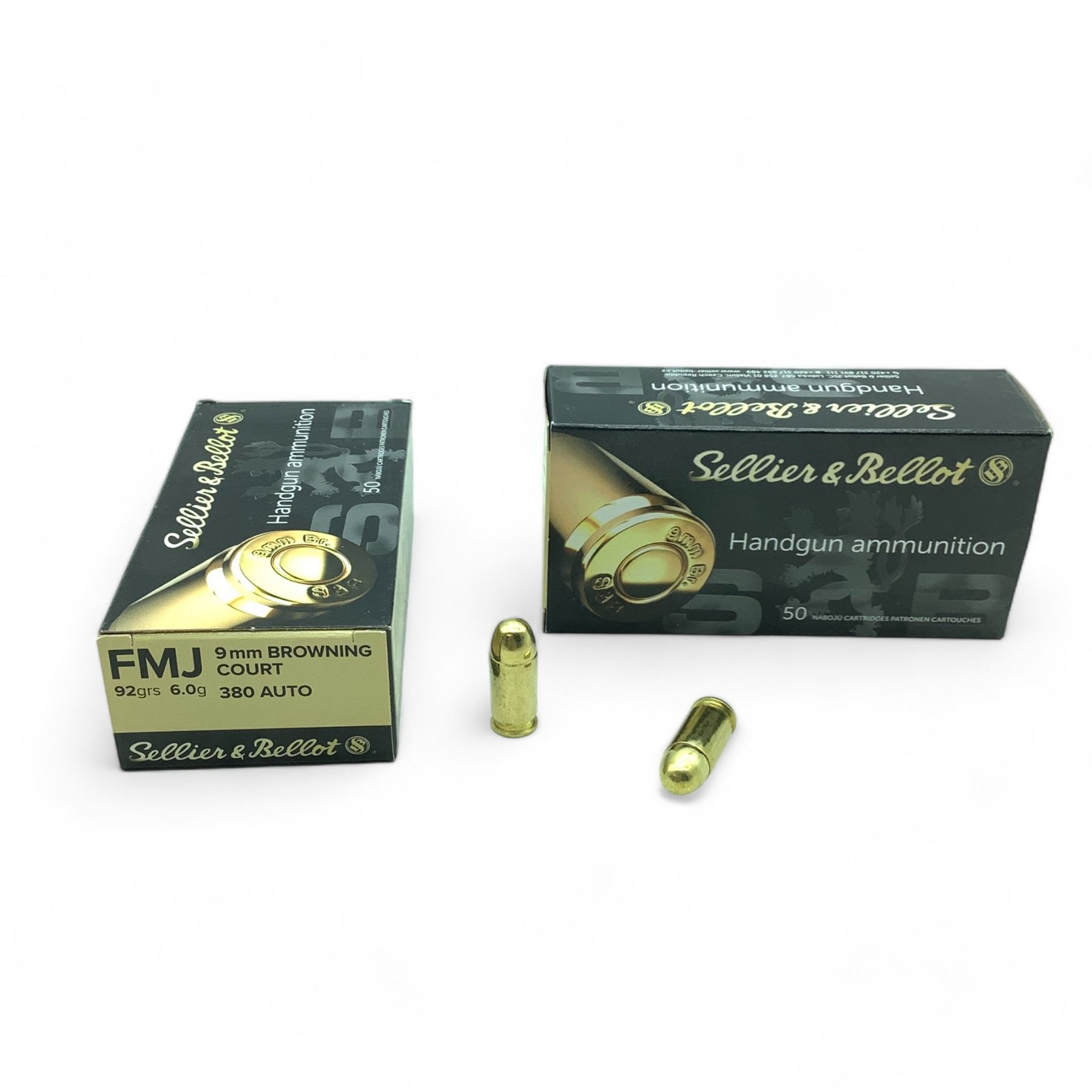 Sellier & Bellot 9 mm Browning Court 92 Grain FMJ Ammunition, 100 Rounds