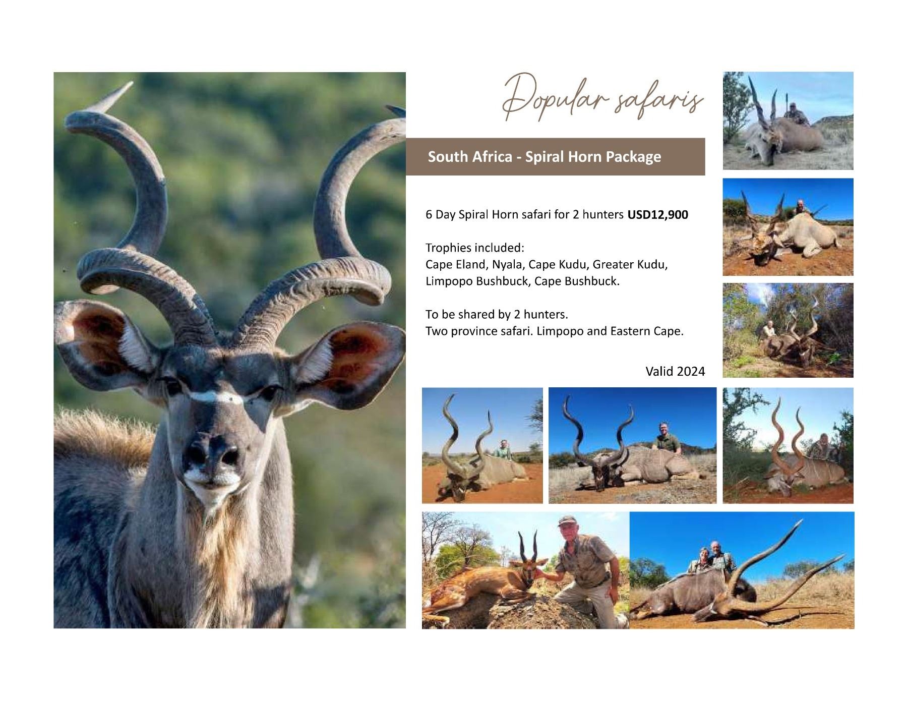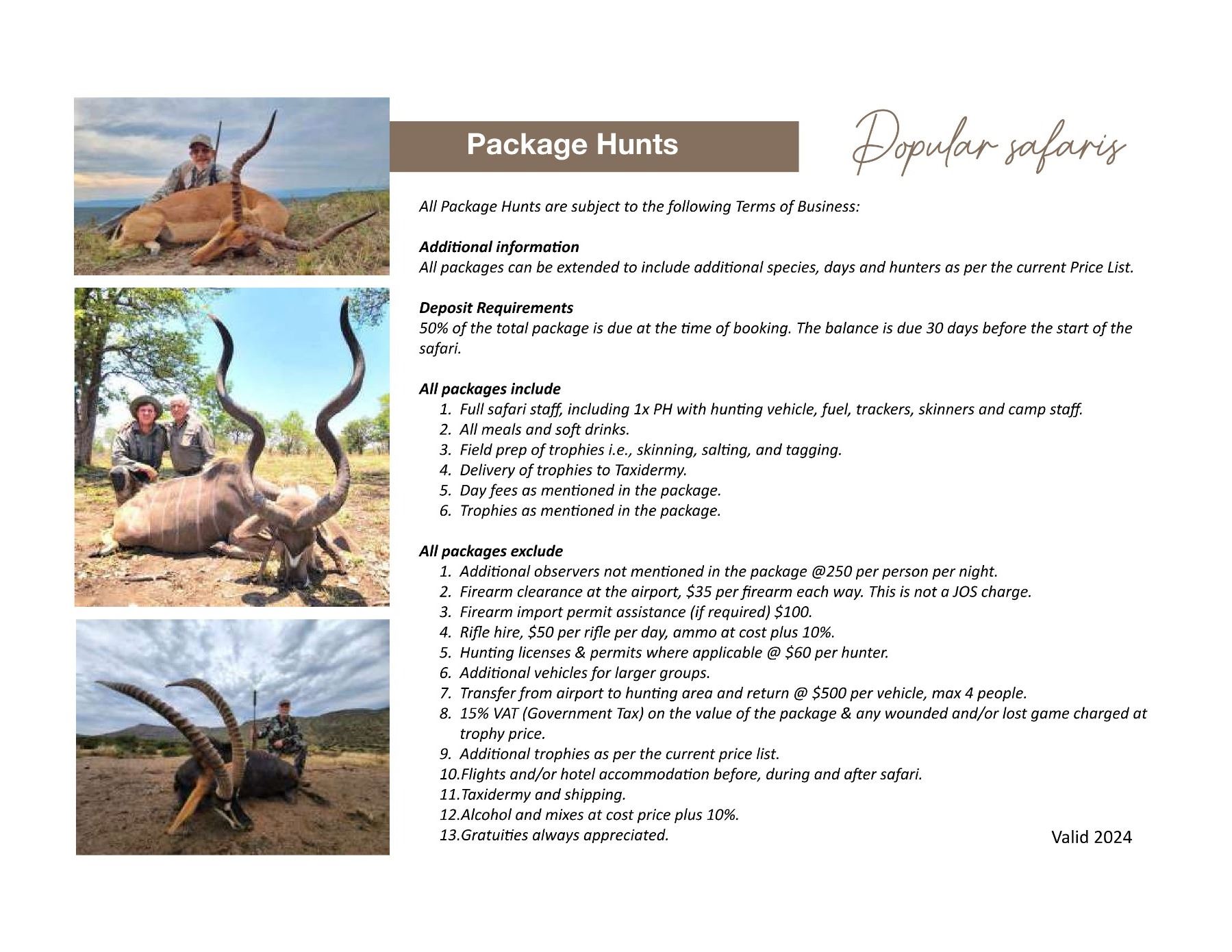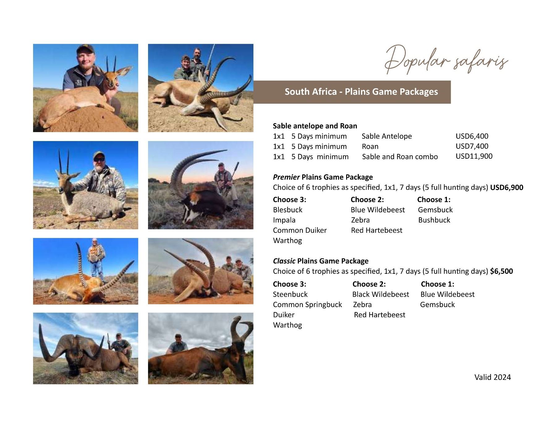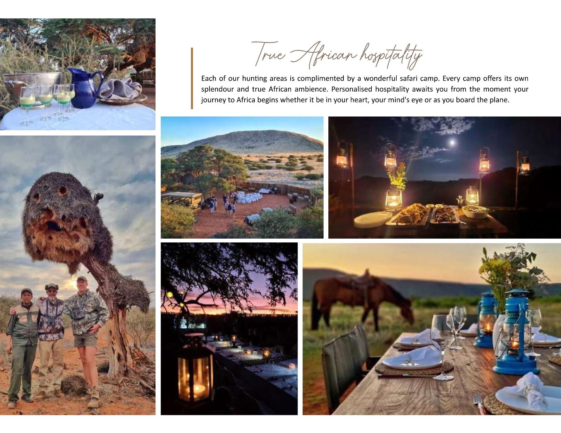 6. Hunt: Full safari staff, including 1 PH with hunting vehicles, trackers, skinners and camp staff.