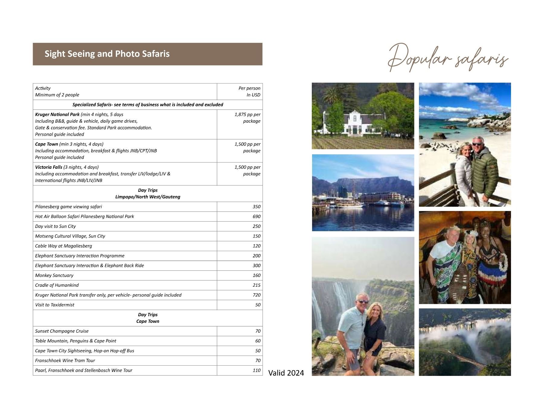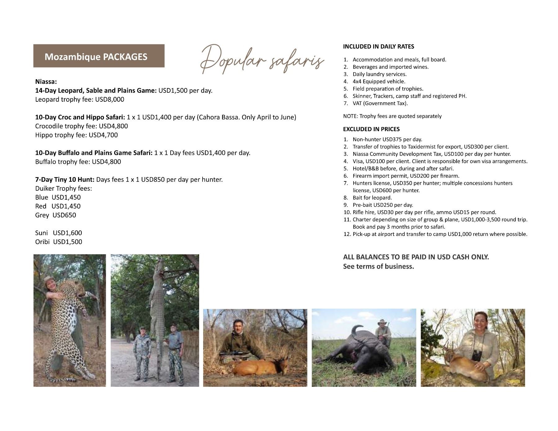 Type of Hunt Rifle and/or Handgun Number of Days 4 Days Victoria Falls & 3 Days Plains Game hunting Number of Hunters 1 Hunter (one hunter with one PH) Number of Non-hunters 1 Non-hunter