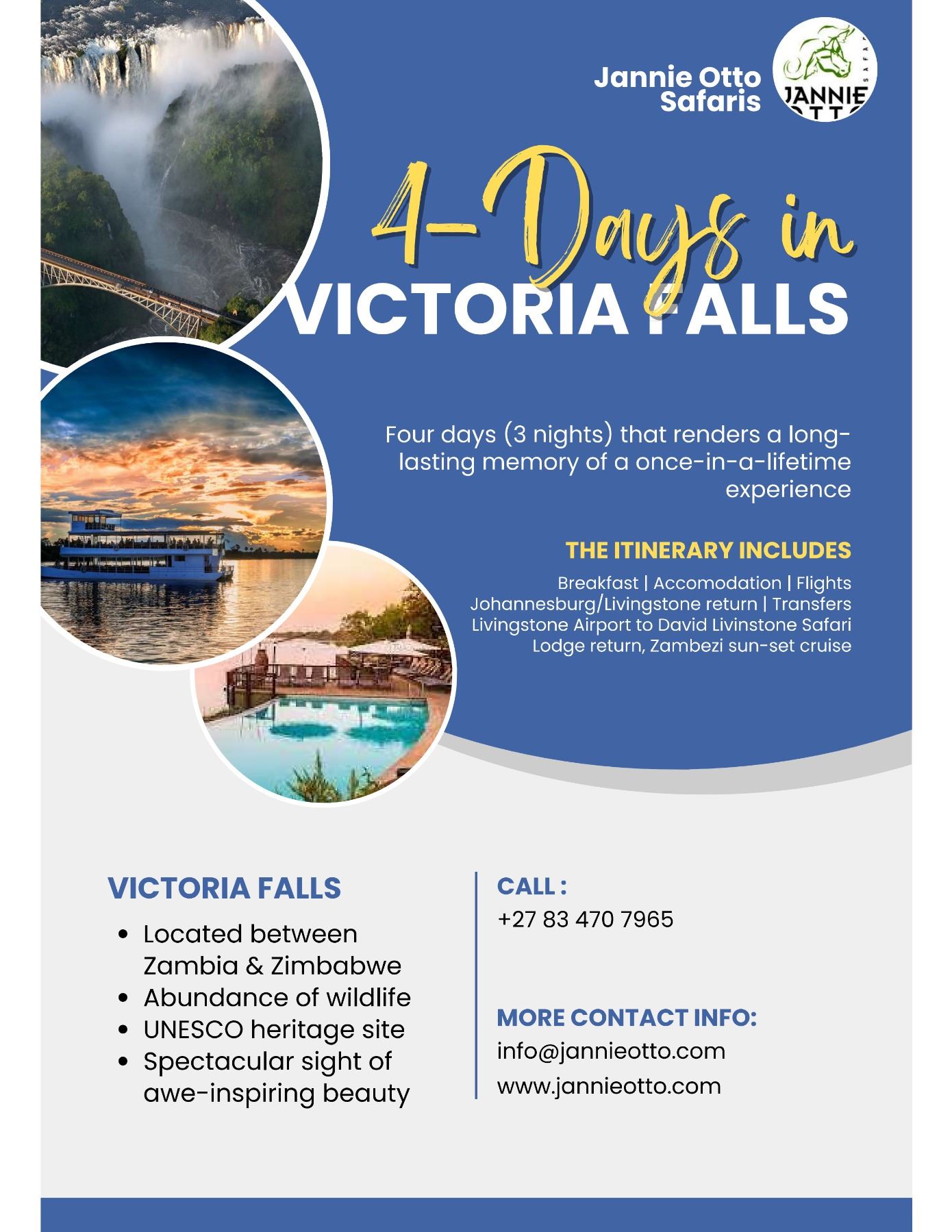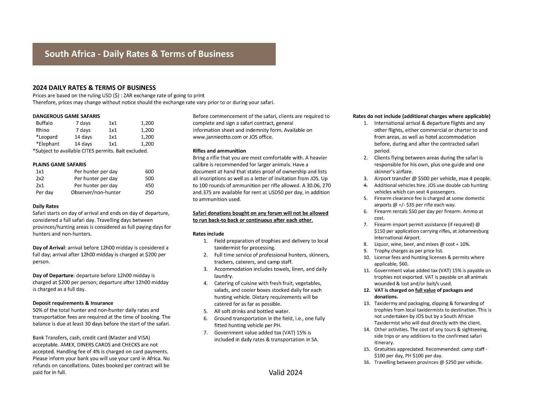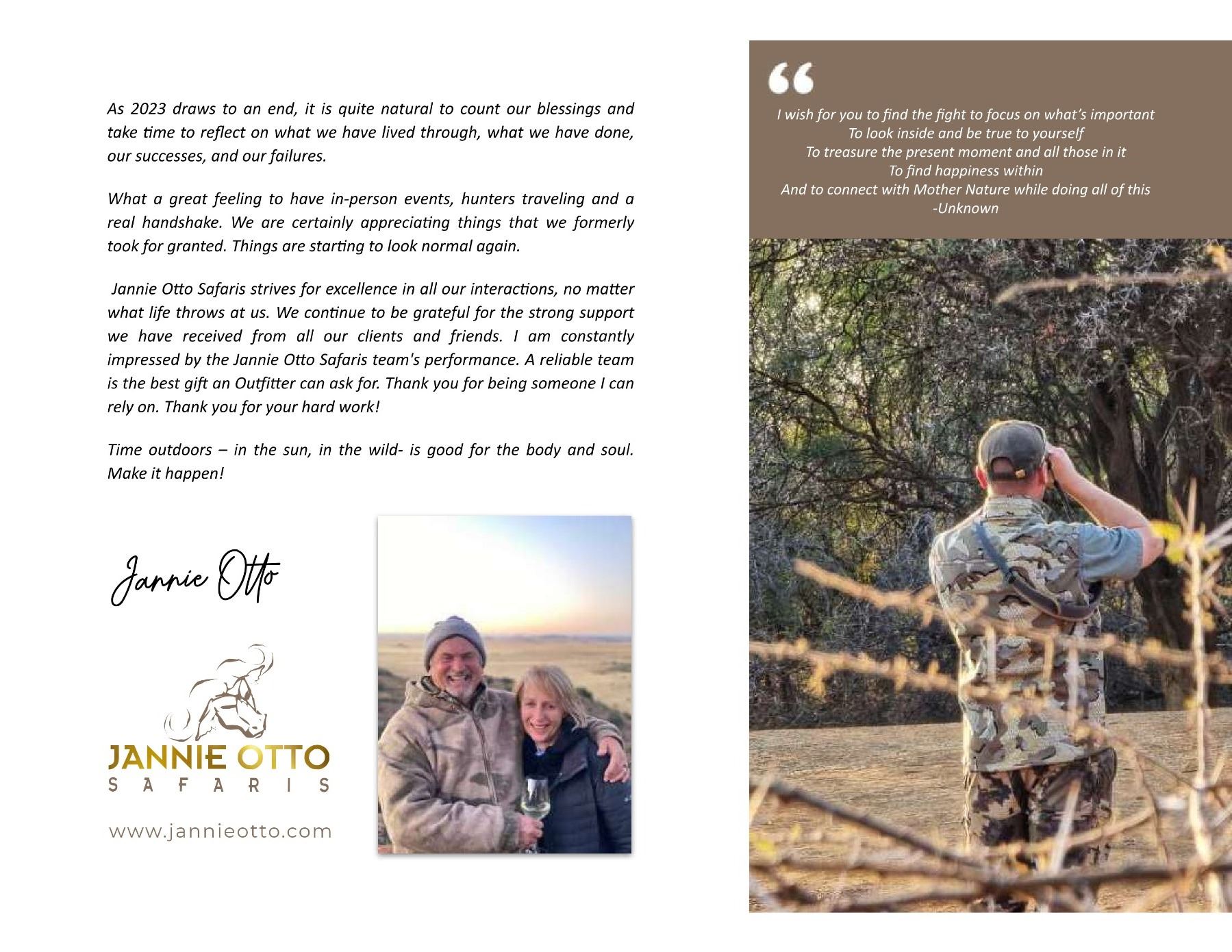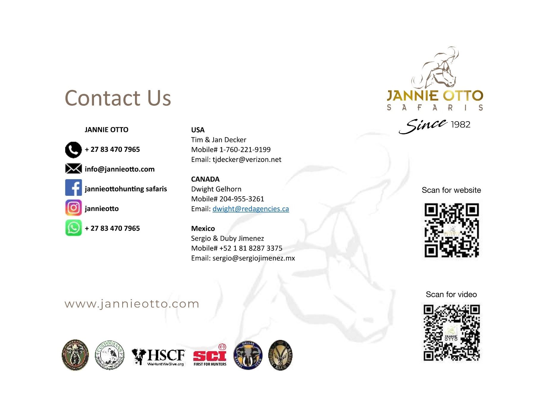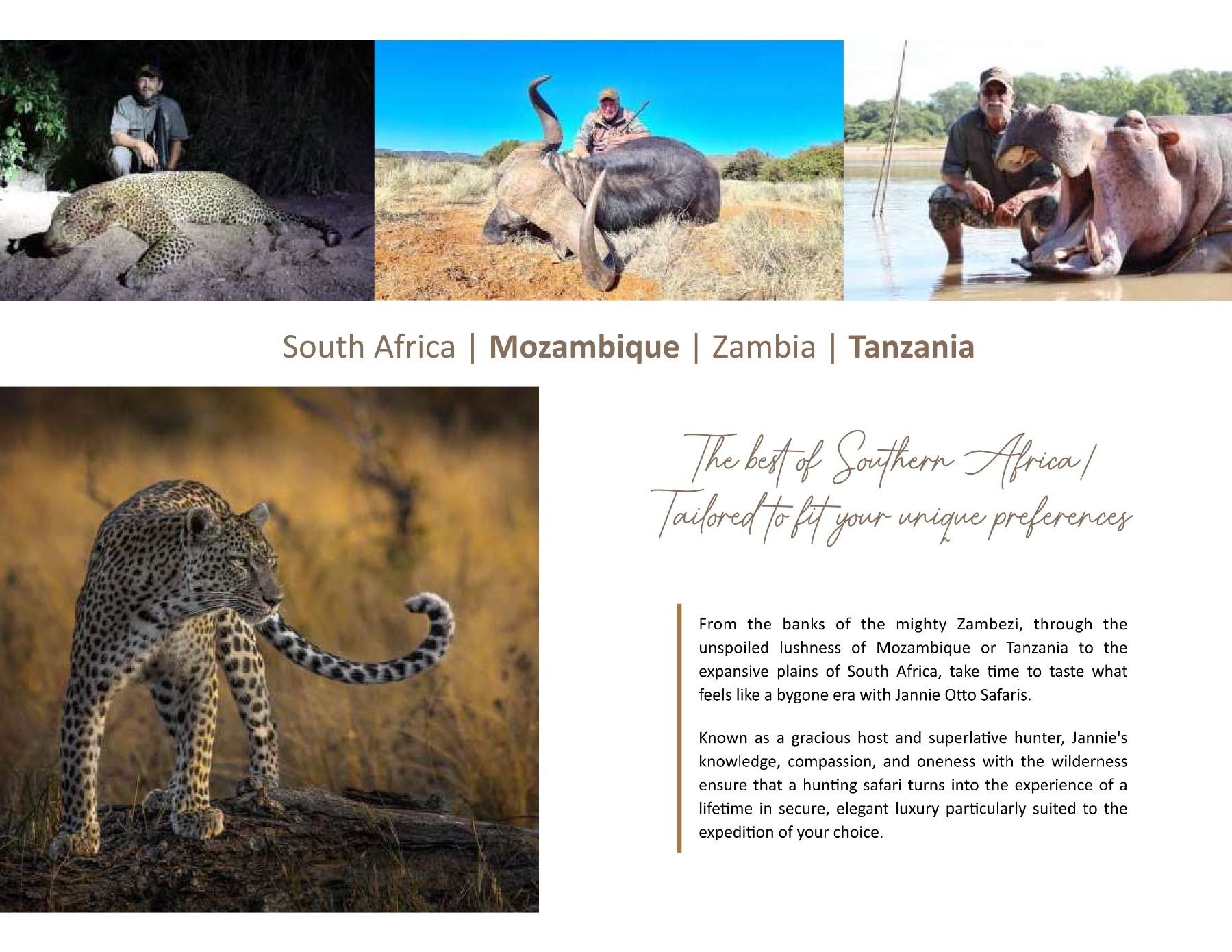 JANNIE OTTO SAFARIS www.jannieotto.com | info@jannieotto.com PostNet Suite 389, P/Bag X31, Knysna 6570, South Africa Tel: +27 83 470 7965