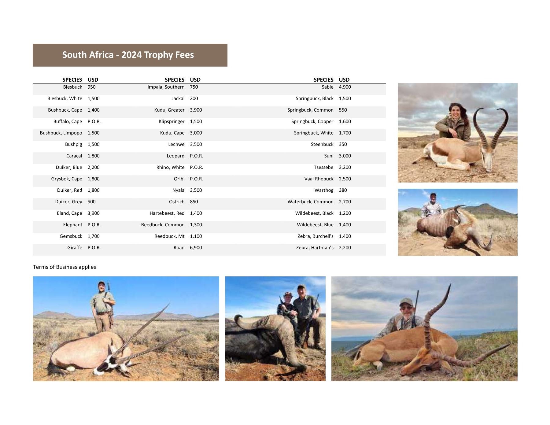 4. Hunt: Trophy fees for one oryx and one common springbuck.