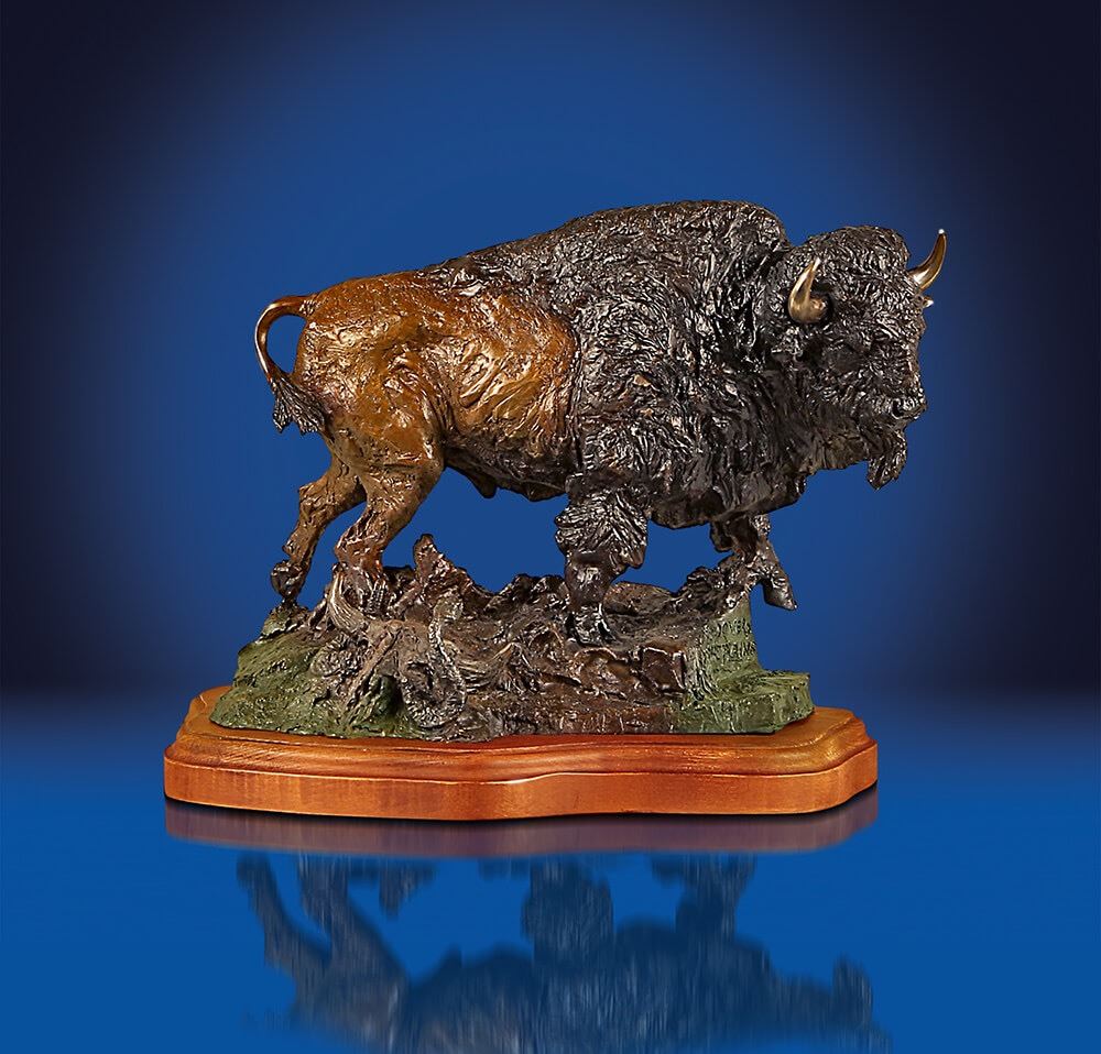 This limited edition bronze statue by renowned artist Lorenzo Ghiglieri depicts an American buffalo as the "Power of the Plains."
