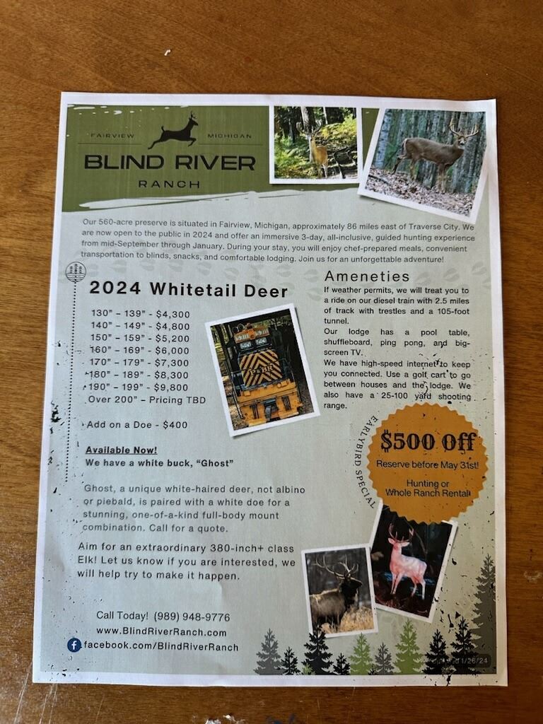 Outfitter just called and said lodging and meals included for 1 day hunt.