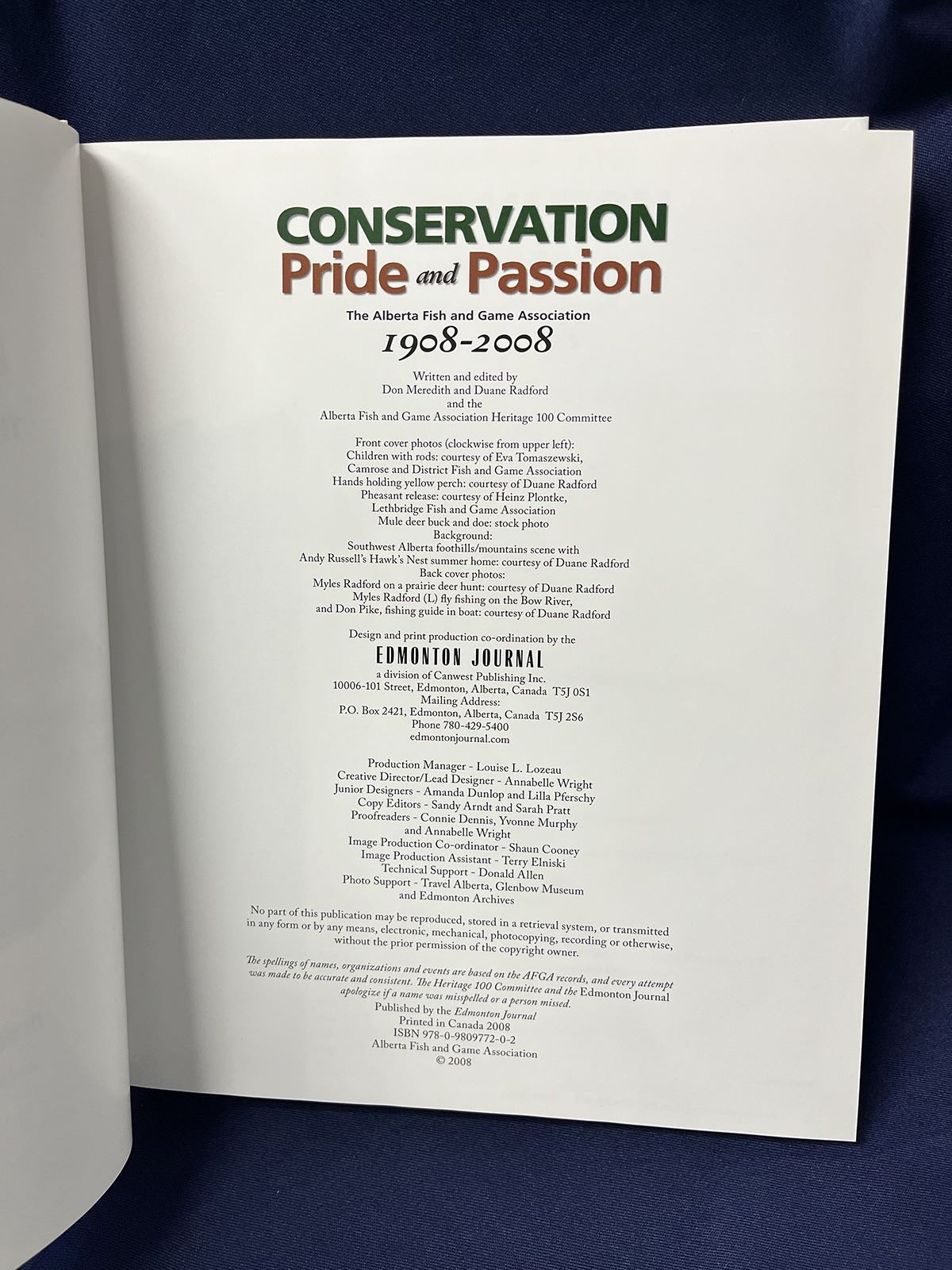 •This fully donated donated hardback book is titled: Conservation Pride and Passion: The Alberta Fish and