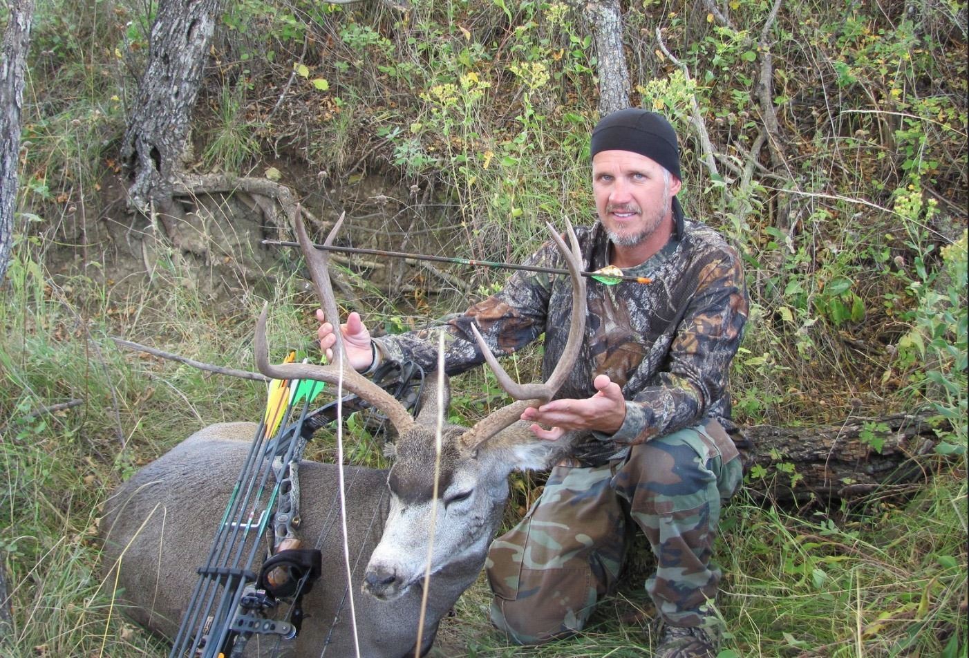 4.5 day hunt. Limited access South Dakota Archery Mule Deer or Whitetail hunt. This can also be exchanged for 3 Merriam Turkey hunts. This hunt is good for one hunter. Food and Lodging is included. Hunter is responsible for the cost of the license ($300).