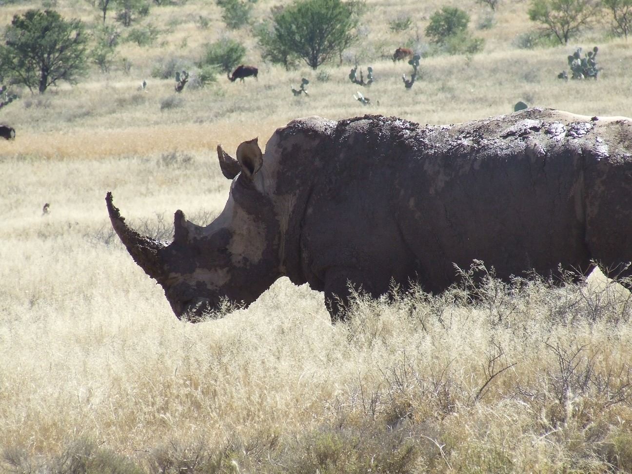 7-day 1x1 white rhino and plains game safari for one hunter and one non-hunter in South Africa - includes trophy fee for silver medal white rhino bull (importable) and $5,000 trophy credit towards plains game species. Method of take is rifle in 375 caliber or higher. This hunt is available February 1-December 1, 2025 or 2026 and may be upgraded to include additional plains game exceeding the credit. Additional hunters are welcome at $550/day plus 15 % VAT; non-hunters are welcome at $$225/day plus 15% VAT. Transportation during the hunt is mostly by vehicle and foot with hunting done by spot & stalk. This package includes field prep, transportation to shipper, RT transfers from Port Elizabeth Airport to camp, luxury lodge accommodations, hunting license/permit, beverages and all meals. Not included are dip & pack service, before/after hunt accommodations (if needed) and gratuities. Merika Botha, 011 27 48 881 3816, 011 27 83 455 8080, PO Box 389, Cradock, Eastern Cape Province 5880, SOUTH AFRICA, afs@murrayranches.co.za, AfricanFieldSports.Co.Za.