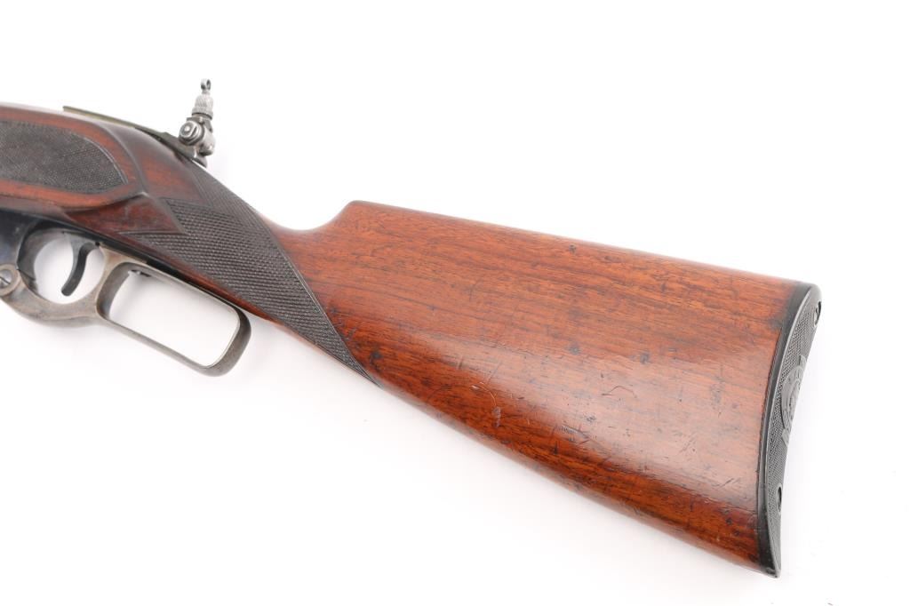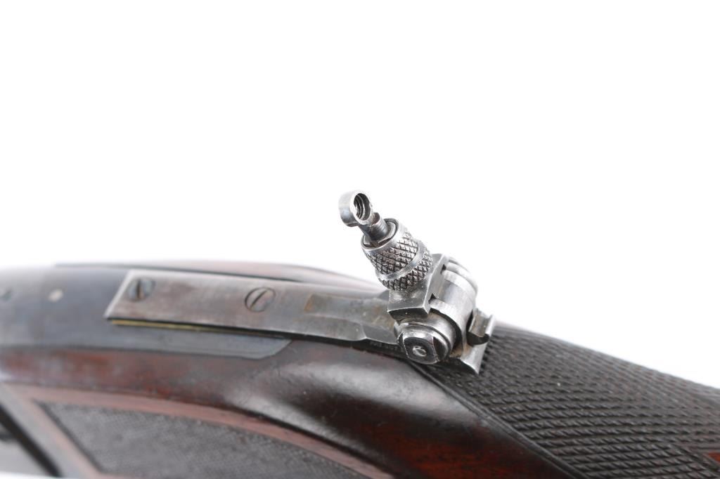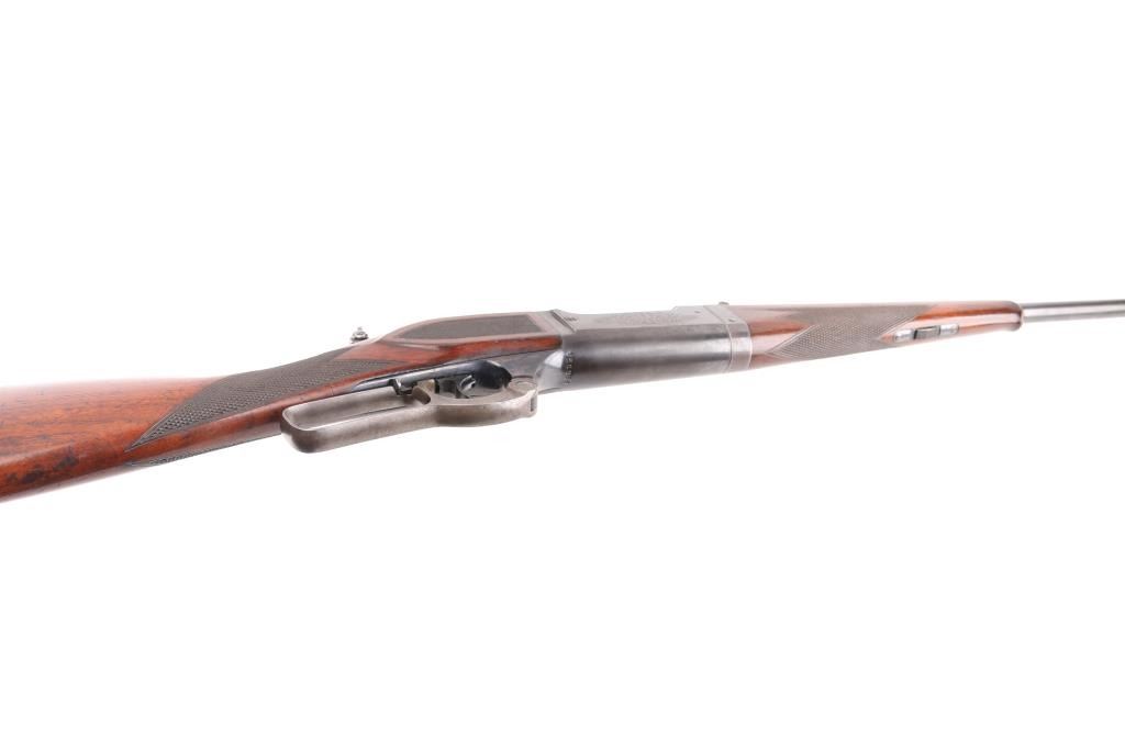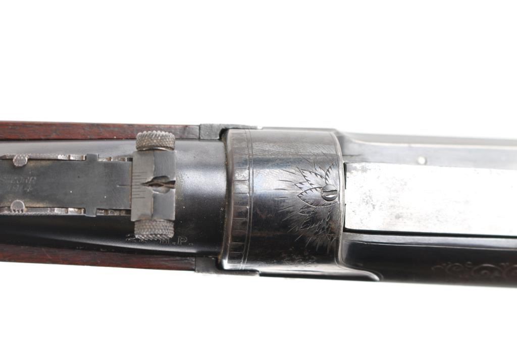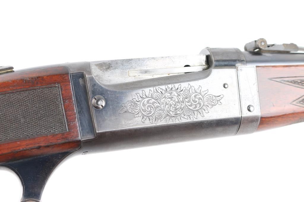 SN: 156368. Two Barrel set. Manufactured in 1914 with standard markings including the grade "A" type floral engraving on the receiver and barrel at the breech. 20" barrel fitted with pinned beaded brass blade front, adjustable sporting rear, and Lyman receiver mounted peep sights. Mounted with a nicely figured checkered schnabel tip forearm and straight grip stock with hard rubber factory buttplate. Chambered in Savage .22 High Power center fire cartridge(5.6x52mmR) Blue finish, case colored lever. Brass cartridge counter with window on left side of receiver. Cocking indicator on top of receiver. Bore is very good with strong rifling, action is smooth with good lock-up, wood is very good with minor scratches/dings, original blue is about 90% with minor muzzle/edge wear, some handling loss on receiver, traces of case color on the lever.. There is a small area of light pitting on the left chamber, and the under side of the barrel, barely noticeable. Comes with a .410 Ga. 21" barrel with brass sighting bead, very good condition, bore needs cleaning. (Offered from 1920-40). A fantastic conditioned set for it's age. Rare. NRA Condition-Good. C&R Firearm.