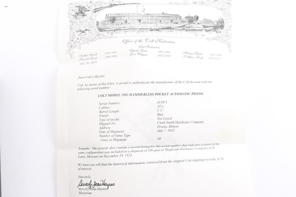 Lot 74 Colt 1903 Pocket Hammerless .32 ACP #411971