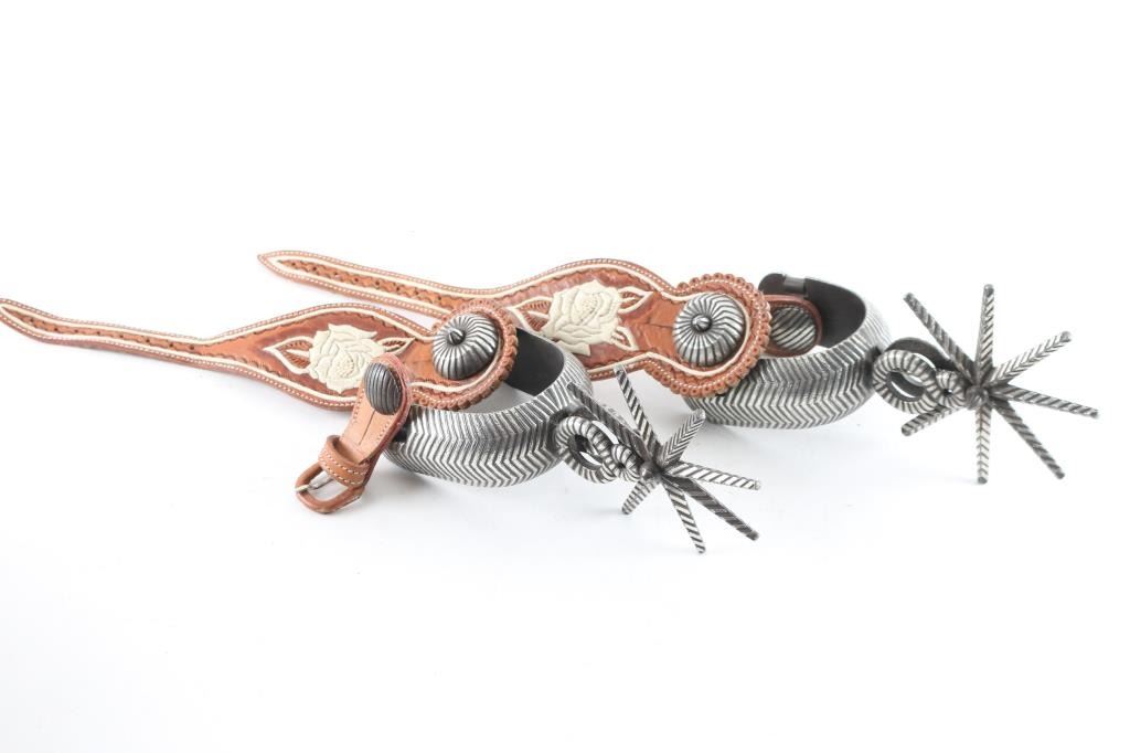 Lot 102 Fancy Mexican Charro Silver Overlaid Spurs
