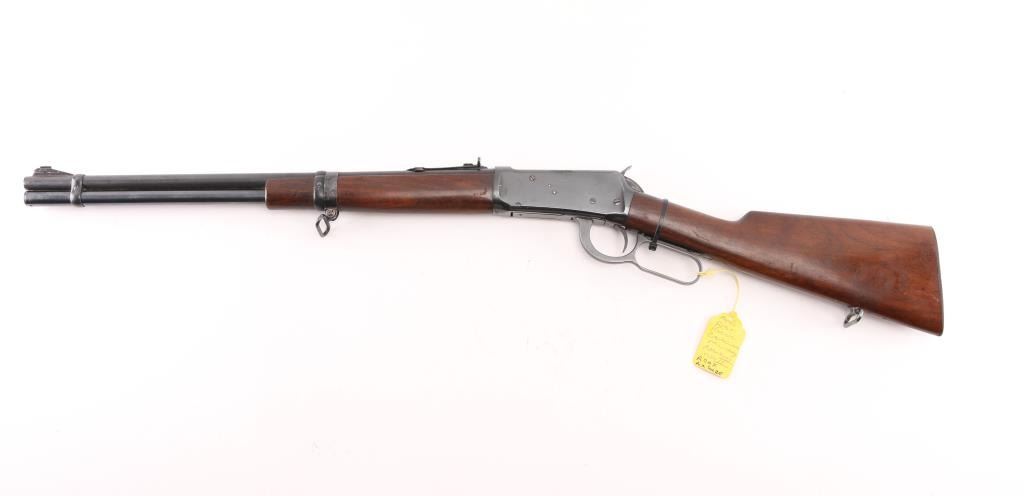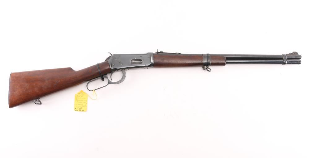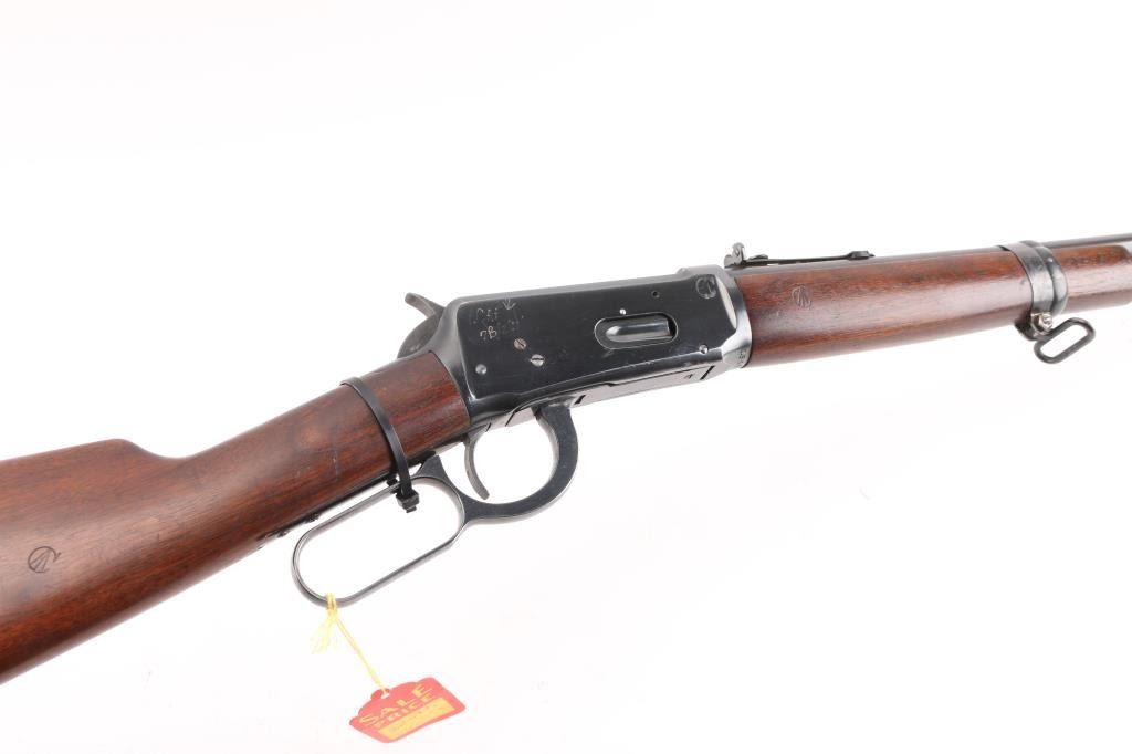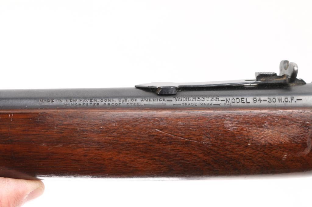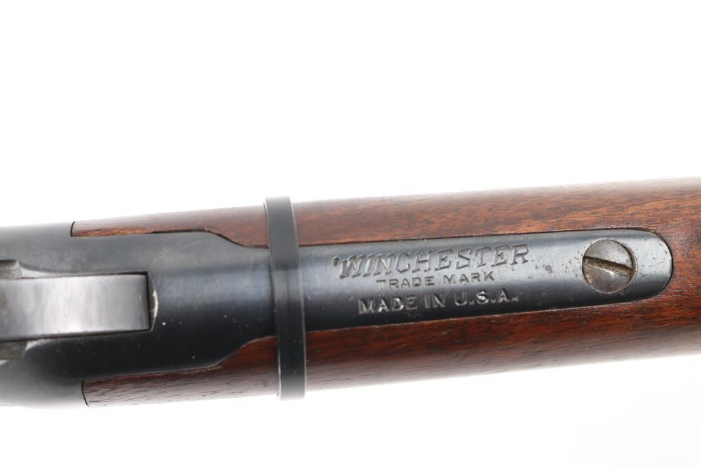Mfg circa 1940's, Canadian Military and Air Force Marked. Sling swivels with sheet metal front band added for use with Canadian military sling. Fine condition showing 95% plus overall original Winchester blue finish. Stocks show sharp inspector's C with broad arrow. Stocks are almost fine with minor losses of finish and slight scratches consistent with issue and carry. Sharp markings and crisp showing very little wear or age. Fully marked and best known example of Canadian Air Force issued 94 carbine, which are uncommon in any condition. C&R Firearm.