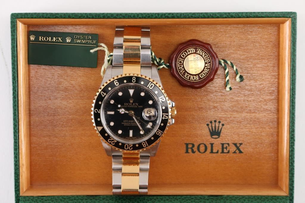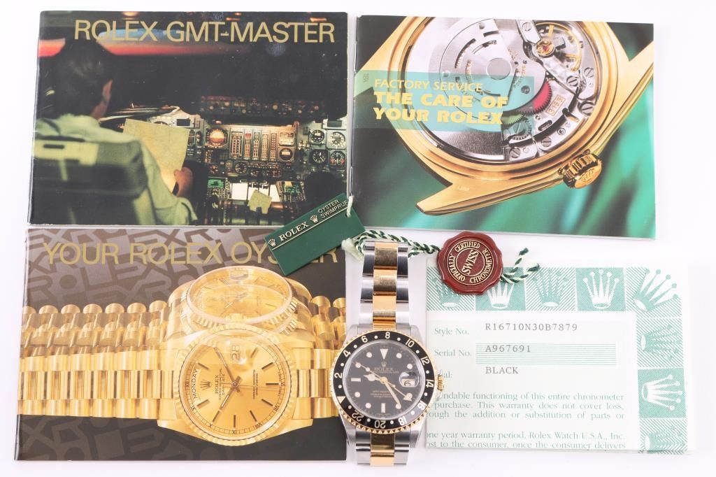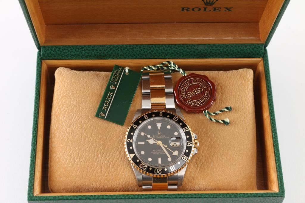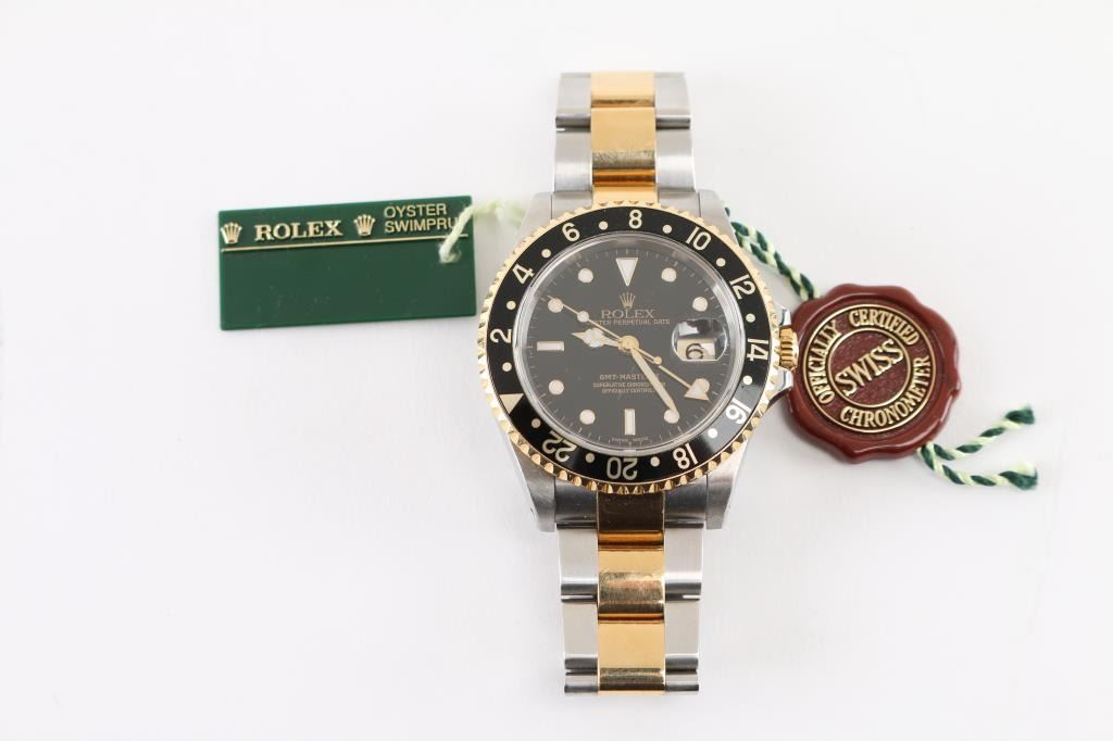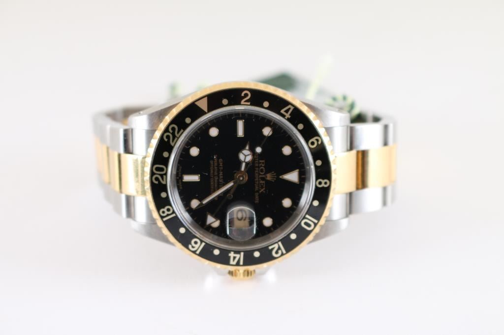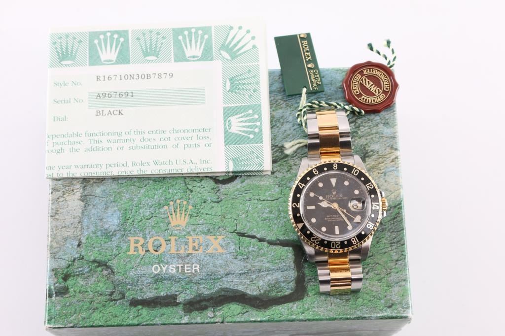 Chronometer Men's wristwatch, two-tone gold and stainless style Number R1671ON30B7879 serial number A967691. Pre-owned Rolex GMT Master II ref will never go out of style. Rolex's iconic pilot's watch first hit the market in the 1950s and continues to mesmerize horology buffs with its enduring and iconic aesthetic. Reference A967691 is a contemporary steel and gold Rolex, introduced in the 2000s. Bracelet, movement, and Maxi dial. This watch is undeniably modern and will appeal to nearly every collector. We also love the Rolex because it was recently discontinued to make way for the current generation of GMTs. It's a highly prized collector's item that we expect will only become more coveted long-term. Comes with original box, warranty, and hang tag. *****For security reasons, this item is subject to additional ID verification after purchase.
