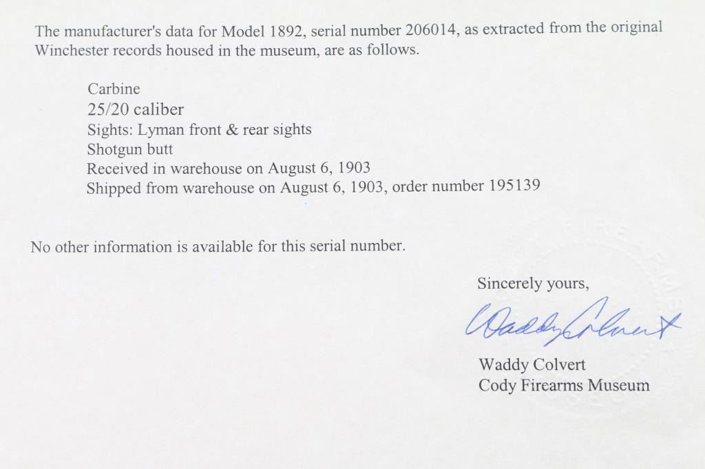 Lot 218a Winchester Model 1892 .25-20 WCF SN: 206014