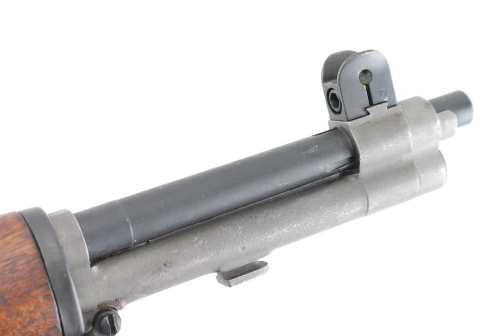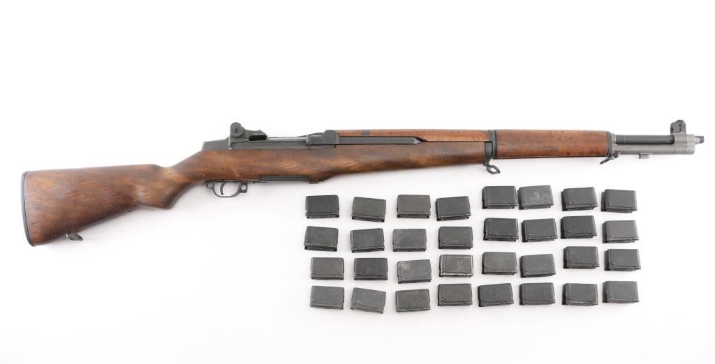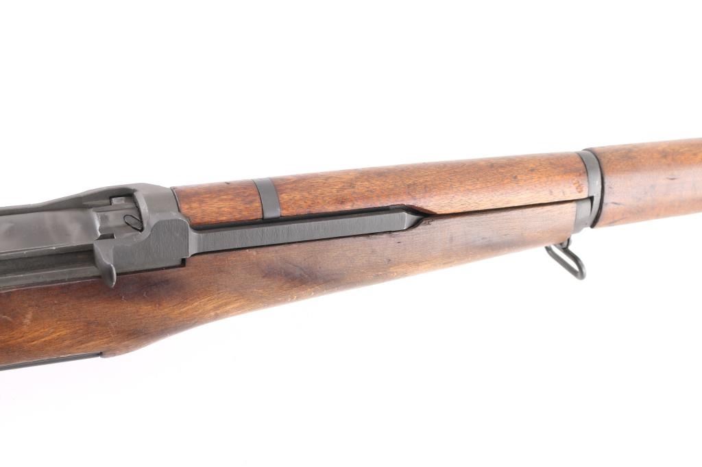 Rebuilt U.S. Military clip-fed semi-automatic service rifle chambered in .30-06 Springfield, manufactured by Century Arms using a receiver cast by them. No markings on the heel of receiver, C.A.I. serial number marked on the left of receiver. Features a parkerized finish, Danish 24" barrel dated 8-60, shrouded blade front sight, adjustable rear aperture sight, bayonet lug, stacking swivel, smooth trigger, milled trigger guard, manual safety, "P.B." (Beretta) marked sights, "SA" marked bolt smooth Danish beechwood handguards and semi-pistol grip shoulder stock with serial number stamped between the grip, & the toe, trapdoor metal buttplate. Wood is plugged by the rear sling swivel where the Danish disc would have been, Rifle retains approximately 95% finish showing minor scratches, edge wear. Action is smooth, the bore appears frosty with good rifling, and the wood stocks are very good. Barrel proofed with crown over VAR ( Danish national arsenal), and crown over DK. (Kingdom of Denmark) Their barrels are first rate. Drawing number "D 6535448". "1170885" etched on bolt, faint. Comes with 49 En-Bloc clips. NRA Condition-Very Good. C&R Firearm.