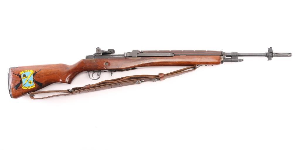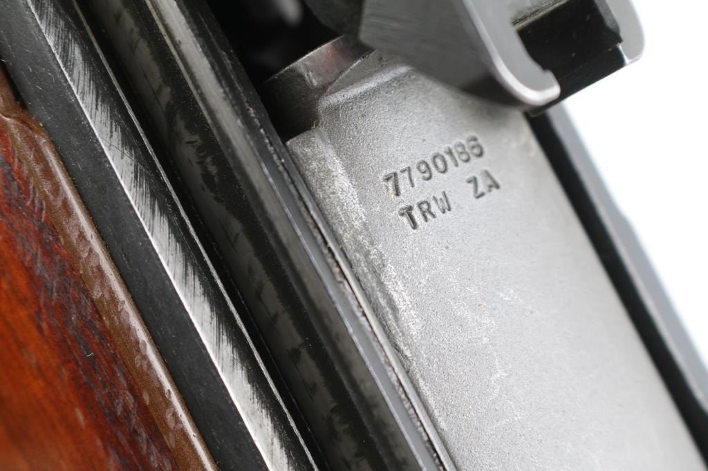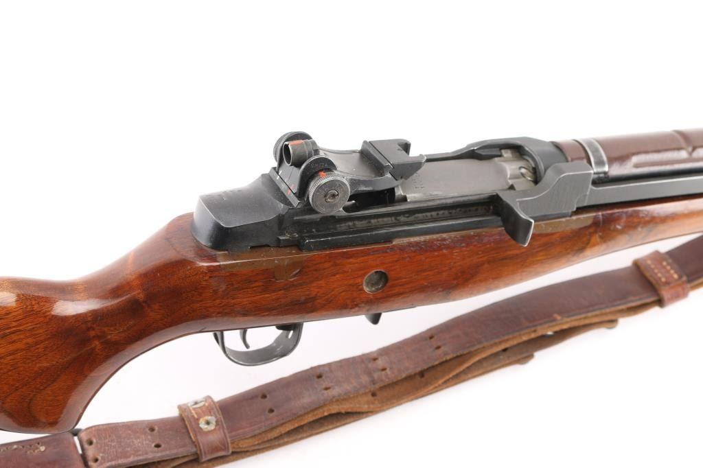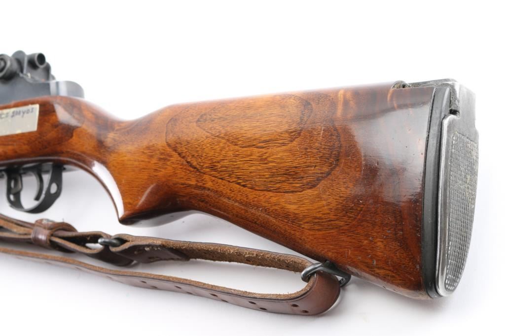 High Quality semiautomatic rifle features parkerized finish, tight bedded smooth walnut stock, brown fiberglass hand guard, 22" barrel, flash hider, bayonet lug, blade front sight with protective ears, adjustable rear sight with National Match (NM 2A marked) hooded peep, sling swivels, manual safety, TRW bolt, stripper clip guide on receiver, accepts detachable magazines (none provided). Buttplate has hinged cover over trap door. Bore is pristine. Retains 90% metal finish, with edge wear and thinning where handled. Stock is very good, urethane finished, bedded, epoxy fill in switch cutout on right side by receiver, with stickers on butt. Includes good condition brown leather two hook competition sling.. Condition is NRA Very Good+ *** Modern Firearm ***