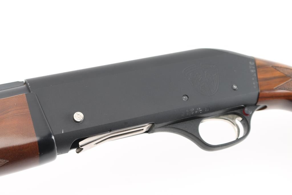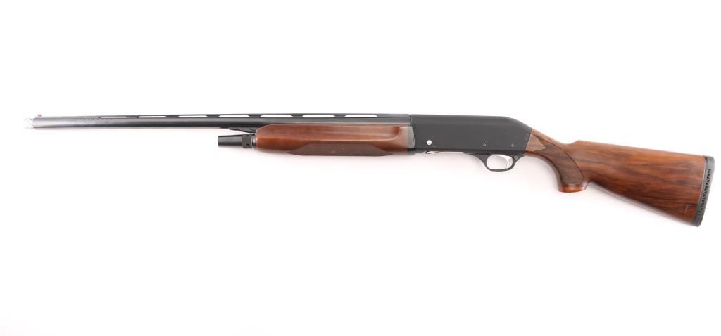 SN: 1014670 Semi-Auto Shotgun. Very nice shooting shotgun, 2 3/4 or 3" shells, 28" vent rib, custom ported barrel, red fiber-optic sight. checkered grip, and forearm, black rubber recoil pad. Custom extended charging handle. Ported SKT .choke installed. LOP is 14 1/4". Bore is pristine, wood and finish are excellent with a couple of very minor scratches. Comes with original factory. plastic case, choke tube wrench, and 5 additional choke tubes. NRA Condition-Excellent. Modern Firearm.