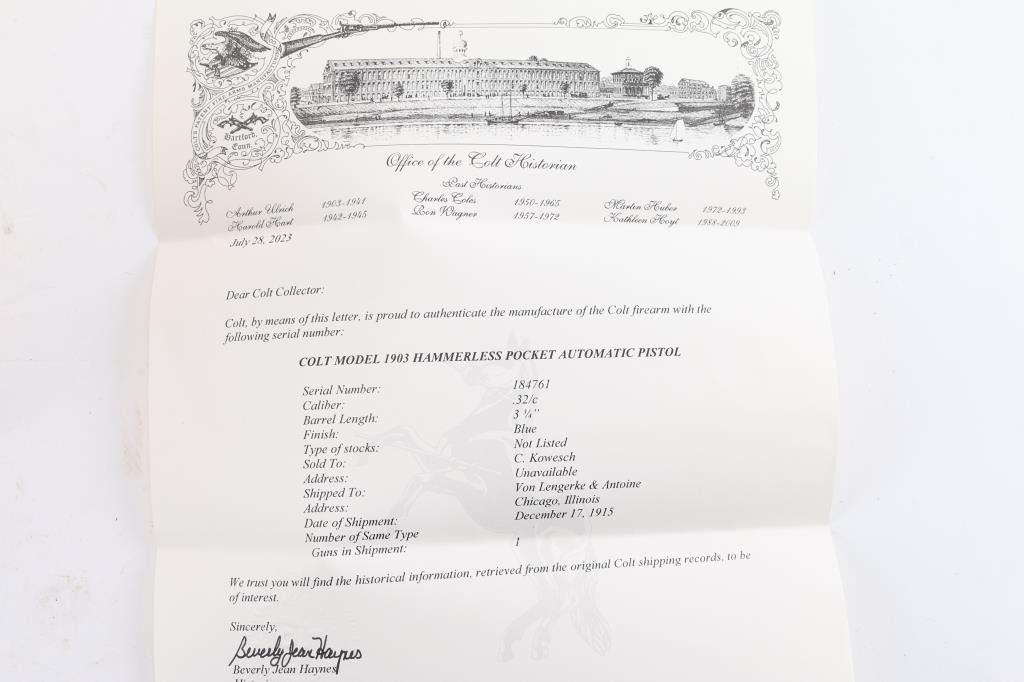 Lot 316 Colt 1903 Pocket Hammerless .32 ACP #184761