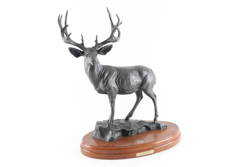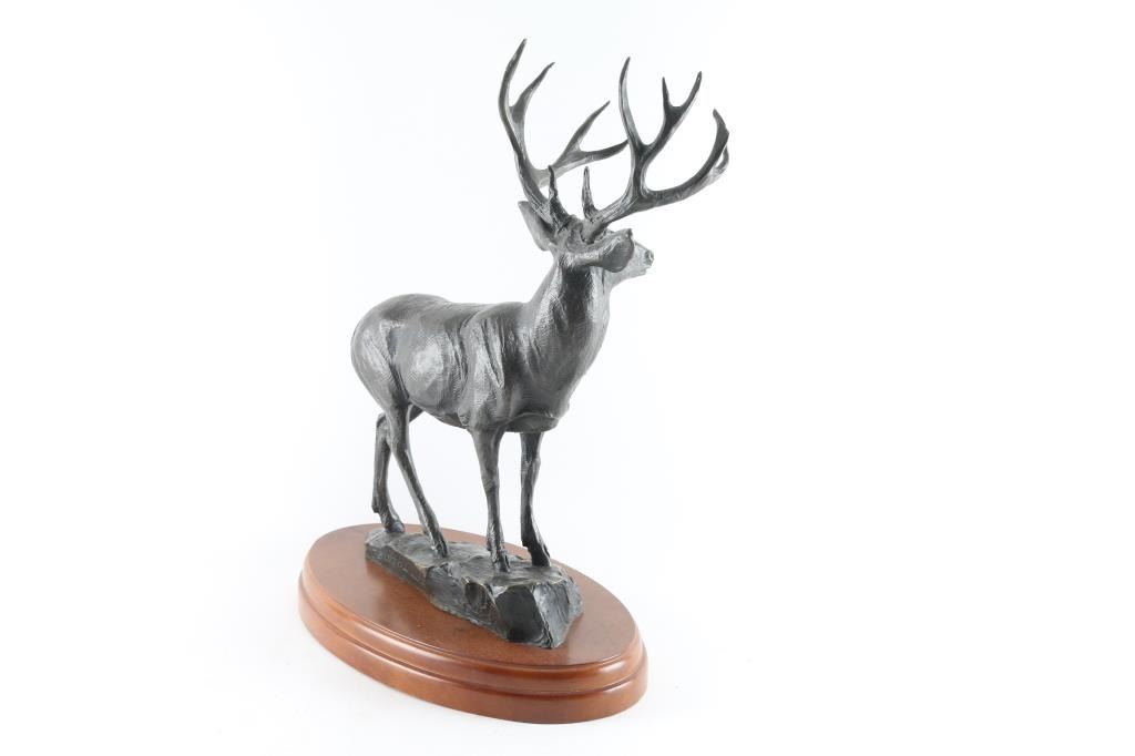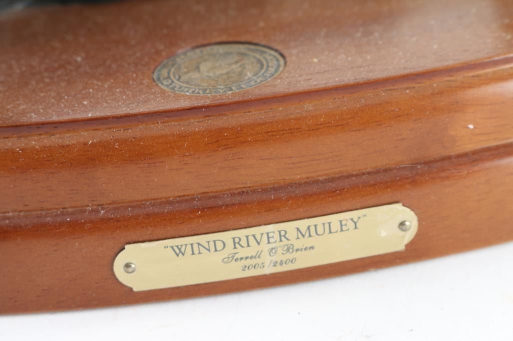 by Terrell O'Brien entitled Windy River Muley. Mounted on wood base measures 19"x16" with National Wild Turkey Federation medallion in wood.