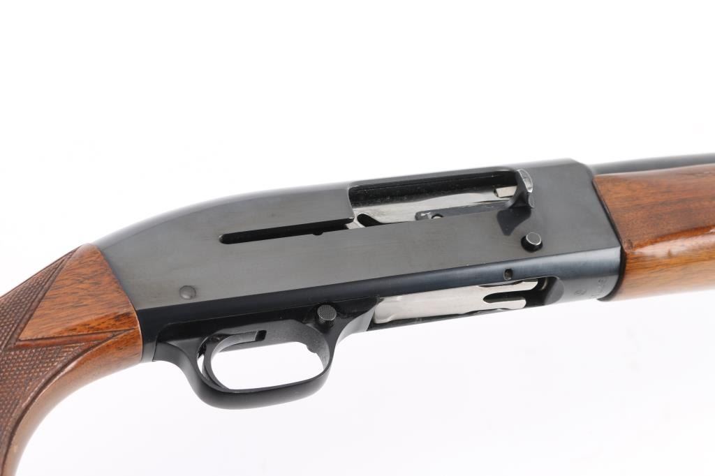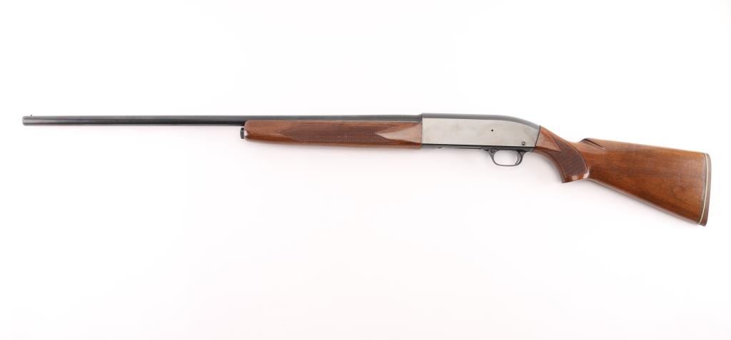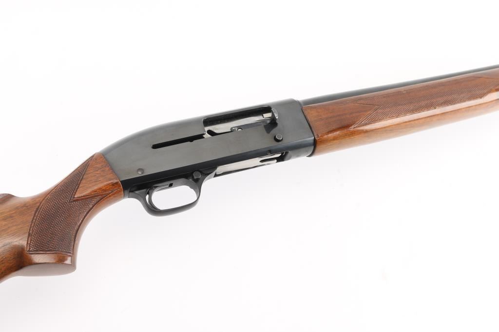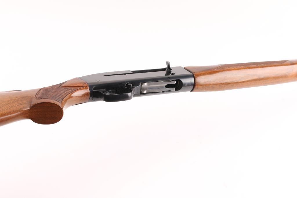 Vintage recoil operated semi-automatic shotgun chambered for 2 ¾” 20 gauge shells, steel frame, manufactured in New Haven, CT circa 1957. Features a blued finish, modified choke 28” plain barrel, brass bead front sight, half length magazine tube, smooth trigger, cross bolt safety, milled steel receiver, point checkered walnut forend and semi-pistol grip shoulder stock with thin rubber butt pad. Bore is very good. Retains 90% finish with handling marks. Wood is very good, some scratches and other blemishes. Condition is near NRA Excellent *** C&R Firearm ***