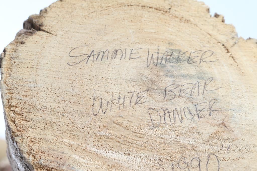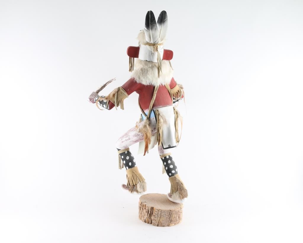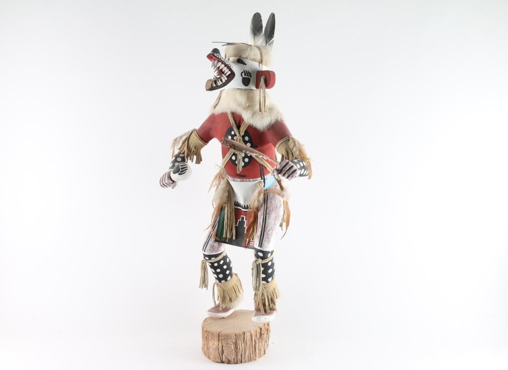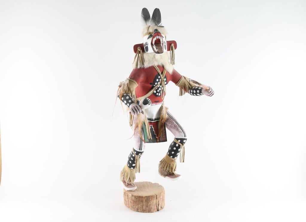 White Bear, hand-signed by Sammie Walker, master carver of Kachina dolls who grew up in Arizona, measures approx 28" high x 8" diameter.