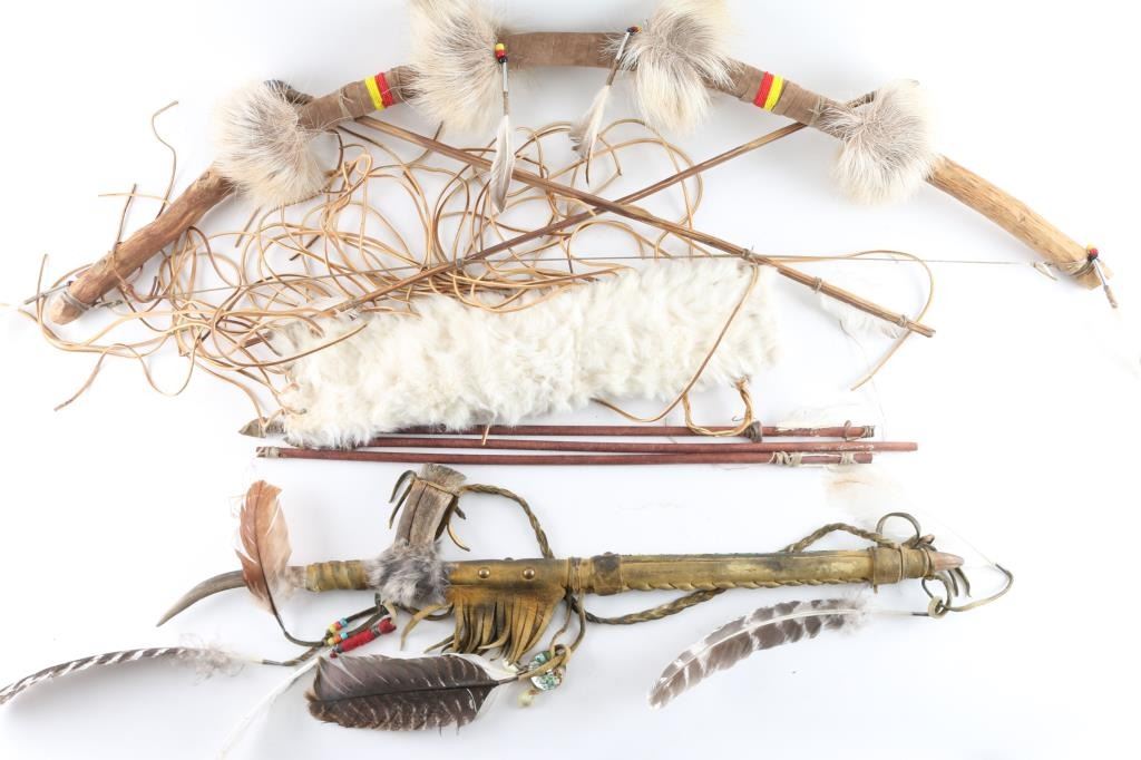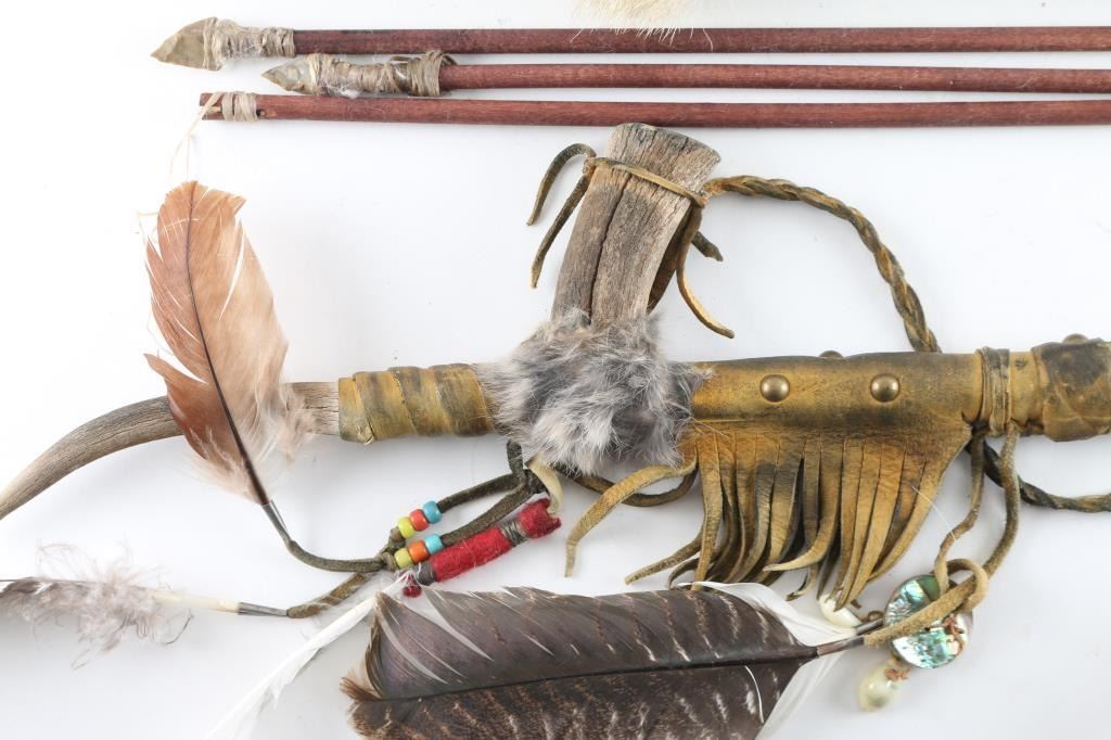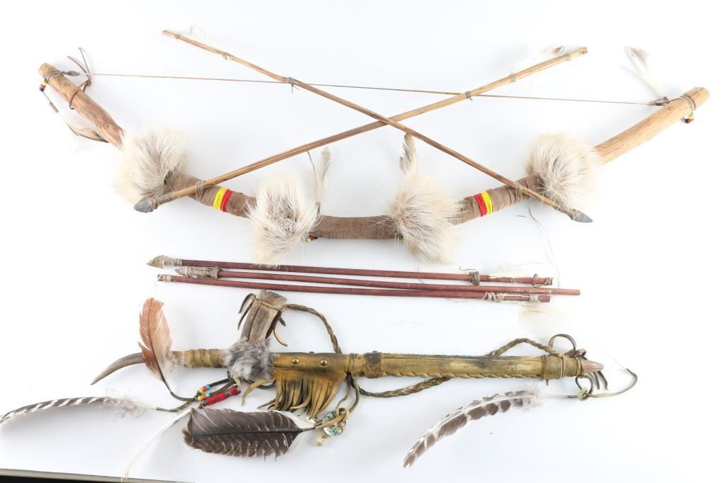 Includes A Hide-wrapped Bow With Red And Yellow Beaded Design, A Rabbit Fur Wrapped Quiver, And A Leather Wrapped Peace Pipe.