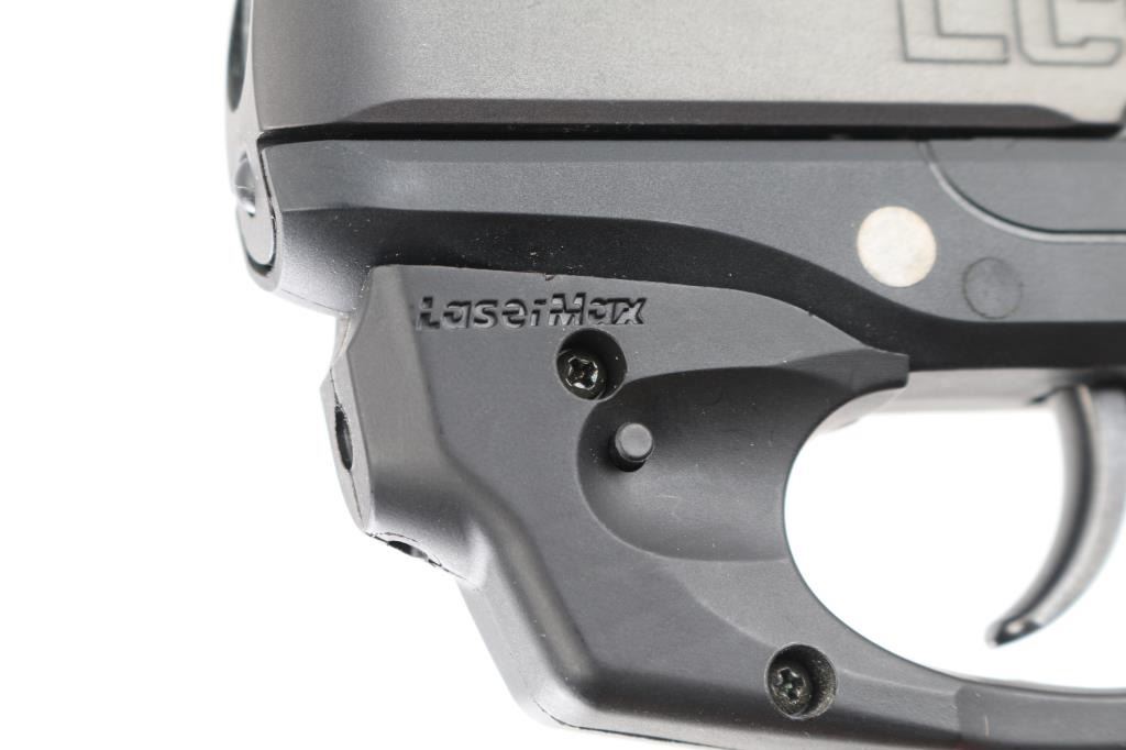 'Lightweight Compact 9mm' Sub-compact double-action-only semi-automatic pistol chambered in 9x19mm, manufactured in Prescott, Arizona. Features a matte blued slide, 3.12" barrel, dovetailed three-dot sights, LaserMax laser sight, smooth trigger, shrouded hammer, loaded chamber indicator on the top of the slide, manual safety on the left side of the frame, magazine disconnect safety, push bottom magazine release, 7 round factory magazine with finger rest floorplate, and black glass-filled nylon frame with checkered grip. Includes the original factory cardboard box with soft case, lock, documents. Pistol retains approximately 99% of it's blued finish. Action is smooth, the bore is excellent and polymer is fine. Comes with black nylon holster/ Condition is NRA Excellent. Modern Firearm.