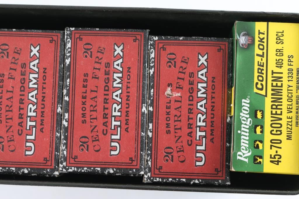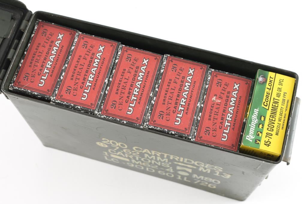Approx. 120 rounds of 45-70. 100 rnds of new factory Ultramax and 20 rnds of new Remington, in factory boxes.