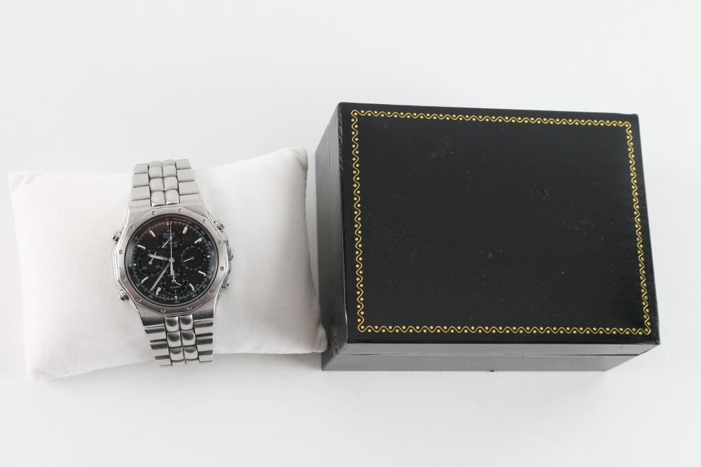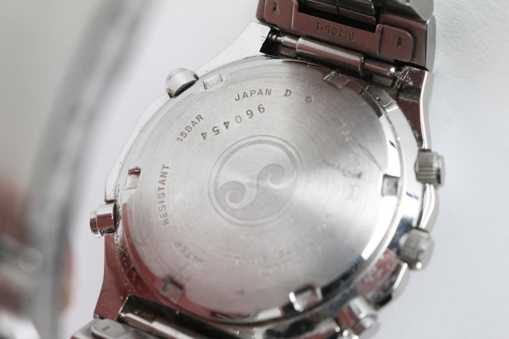 Stainless steel case, water resistant, needs battery, otherwise good. Includes original box.