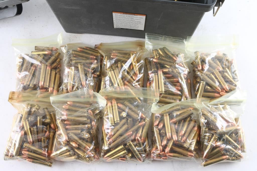 Approx. 500 rounds of factory new 30 Carbine ammunition. Various makers in bags of 50. All in plastic ammo can.