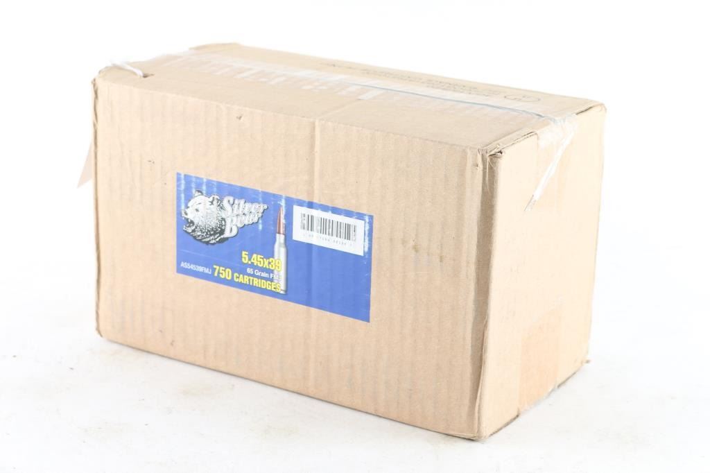 Approx. 750 rounds of 5.45 X 39mm ammunition. Russian made Silver Bear/Barnaul 65 Gr. FMJ steel case. In factory boxes, 1 case.