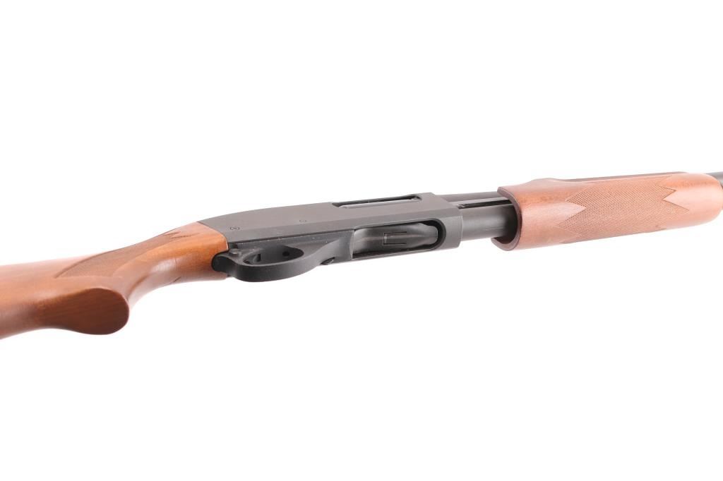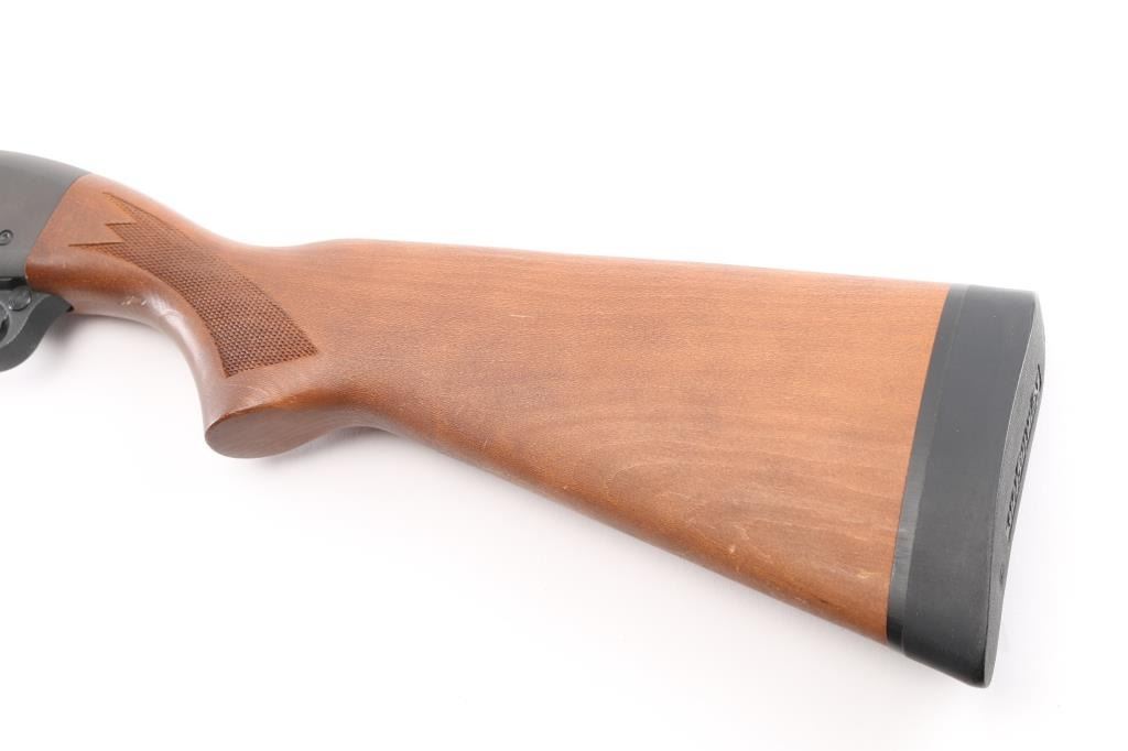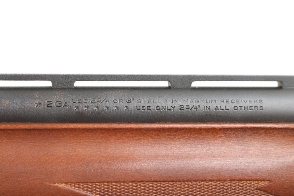 Pump Action shotgun accepts 2 3/4" or 3" shells. Features 27.5" vent rib barrel, accepts choke tubes (MOD installed), steel front bead, push button safety, matte blued finish, checkered wood pump handle, checkered wood semi-pistol grip shoulder stock with curved wrist, factory rubber recoil pad. Top of barrel rib is smooth. 14" LOP. Bore is bright, very condition, needs cleaning. Retains 90% finish with scratches, some scattered patina or light surface rust. Wood stocks are very good with few dents. Condition is NRA Good++ *** Modern Firearm ***