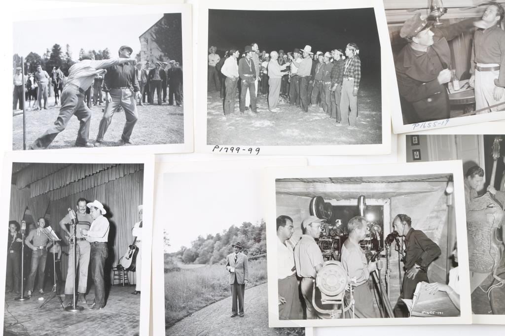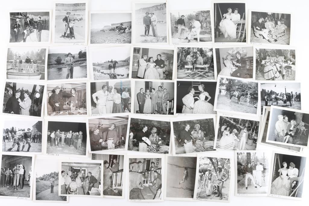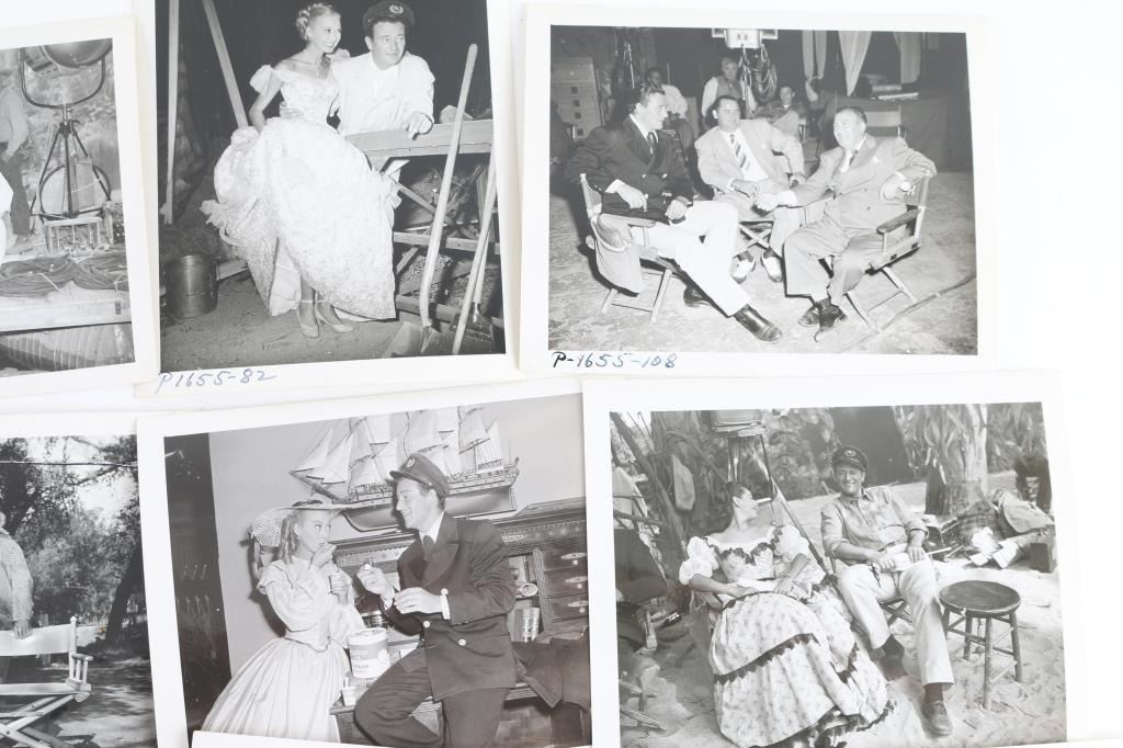 40 black & white photographs of John Wayne on movie sets. Films include The Quiet Man, Rio Grande, Reap the wild Wind, The Fighting Kentuckian. Photos with co-stars, cast, etc. A great group. From the Joe Musso estate, who was personal friends with John Wayne for many years.
