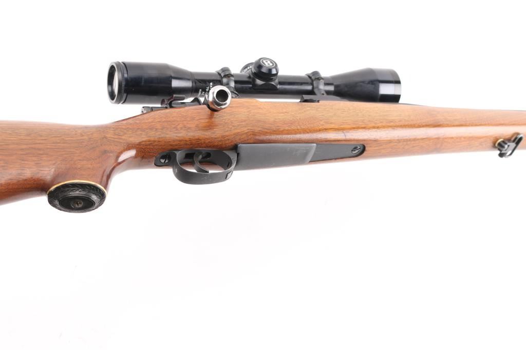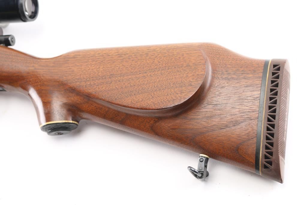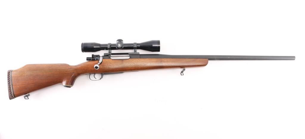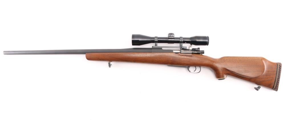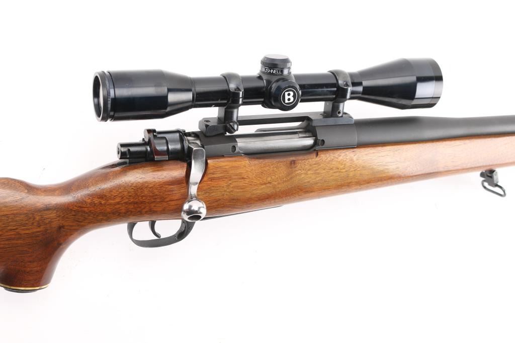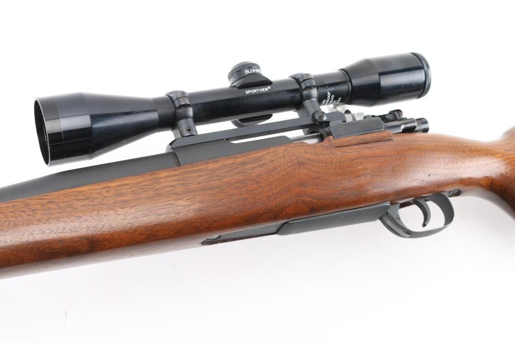 NVSN Customized sporter rifle built on a Japanese made Mauser pattern rifle. No barrel markings. Features a custom 26" heavy barrel, matte blued or parkerized finish. floorplate release button in trigger guard, two position low-swing aftermarket safety on bolt, Korean made Redfield base mounting a Bushnell Sportview 6x40mm scope with duplex reticle. Custom smooth walnut sporter stock features sling studs (with detachable swivels), right hand cheekpiece, ventilated rubber recoil pad. Bore is pristine. Retains 95% finish with handling marks. Wood is very good. Condition is NRA Very Good as customized *** C&R Firearm ***