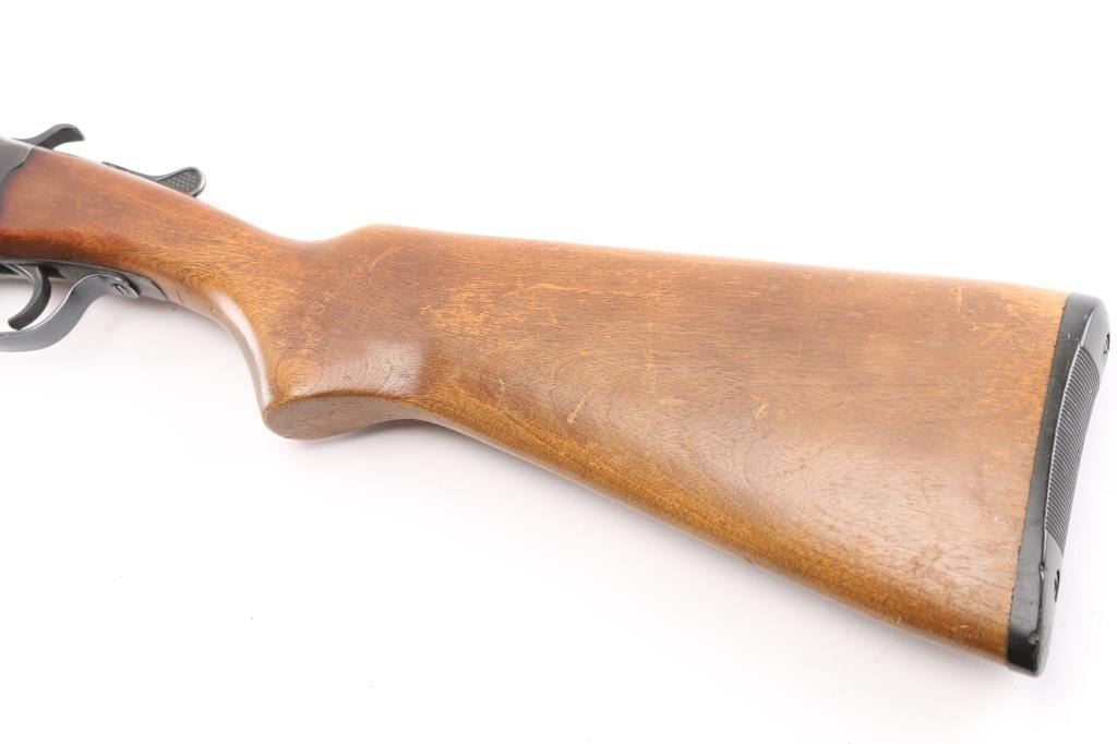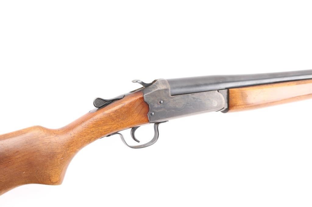 Vintage single shot break top shotgun. Accepts 2-3/4" shells. Features blued finish, 28" barrel, aluminum bead front sight, Full choke, exposed hammer, top lever opening, smooth wood forend and semi-pistol grip stock. Bore is very good condition. Retains 80% finish with edge losses, handling marks. Receiver has faded case colors. Wood is good condition, with finish losses. Condition is NRA Very Good *** C&R Firearm ***