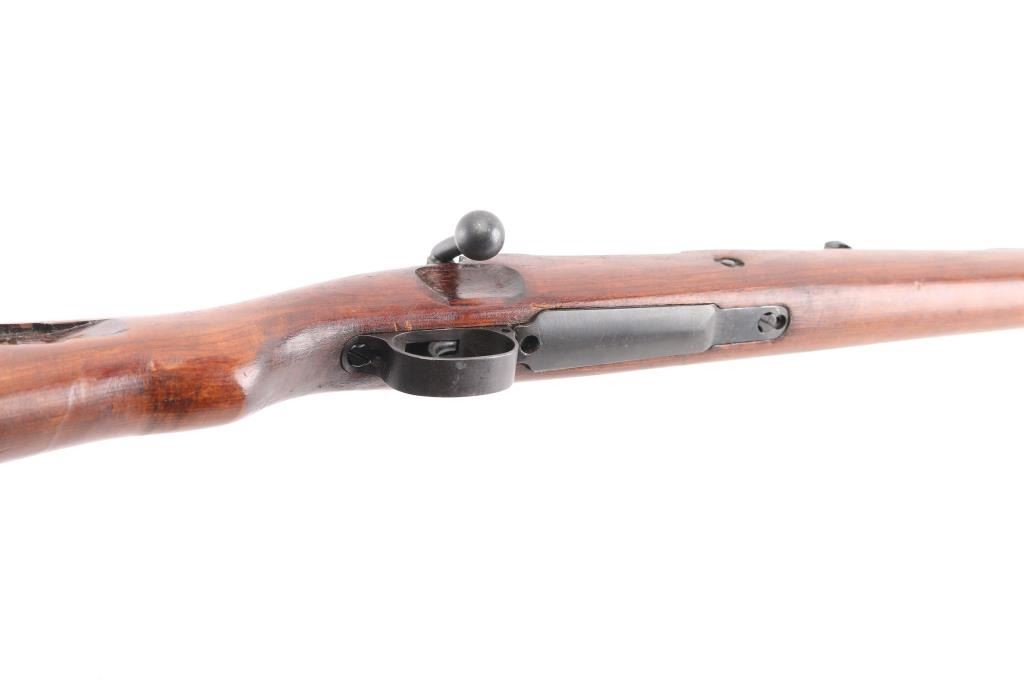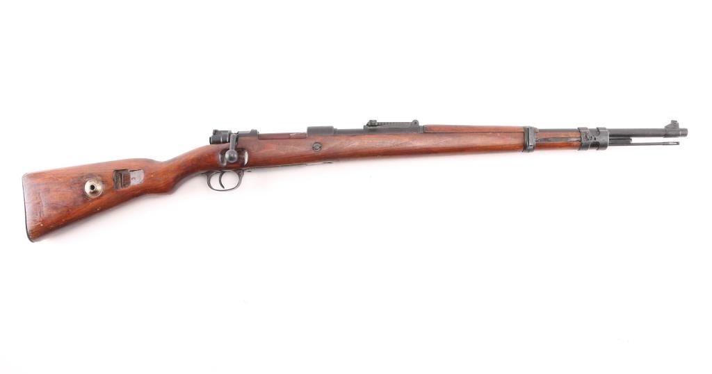 German military issue. WW2 era. 1940 dated receiver. 42 code. (Mauser, Oberndorf) Blued finish. Wood stock with bolt disassembly lug, thin metal buttplate (not cupped). 23.62" barrel. Serial number matched on receiver, barrel, & stock mismatched front band, and rear sight, "(77" eltro-penciled on floorplate, trigger assembly, bolt shroud, and safety lever. (Russian Capture ?) No markings observed on buttplate. "H" front barrel band. Eagle/swastika proofs, and waffenamts present. Wood is good shape, with small dings/dents present, has been varnished. Bore is dark/rough. Action is crisp/tight. metal finish is about 80% with edge/handling wear. Cleaning rod . Imported by TGI, marked on underside of barrel. NRA Condition-Fair (Bore). C&R Firearm.