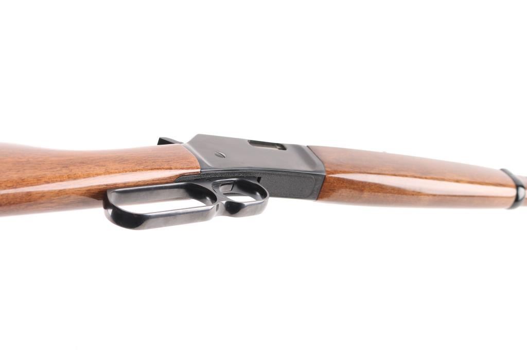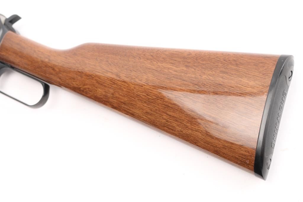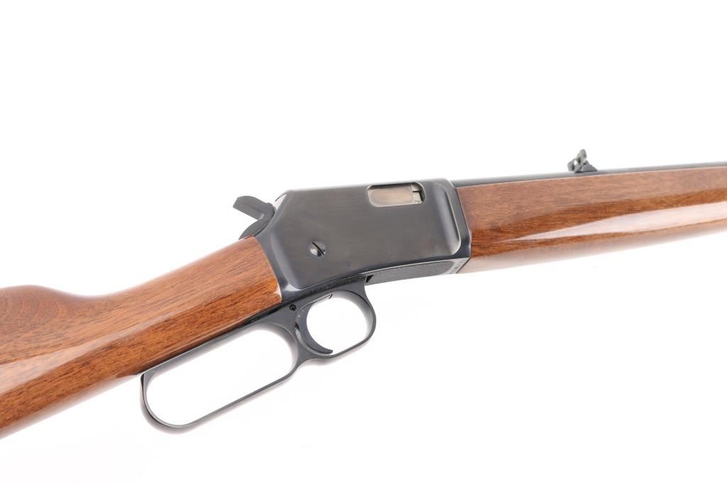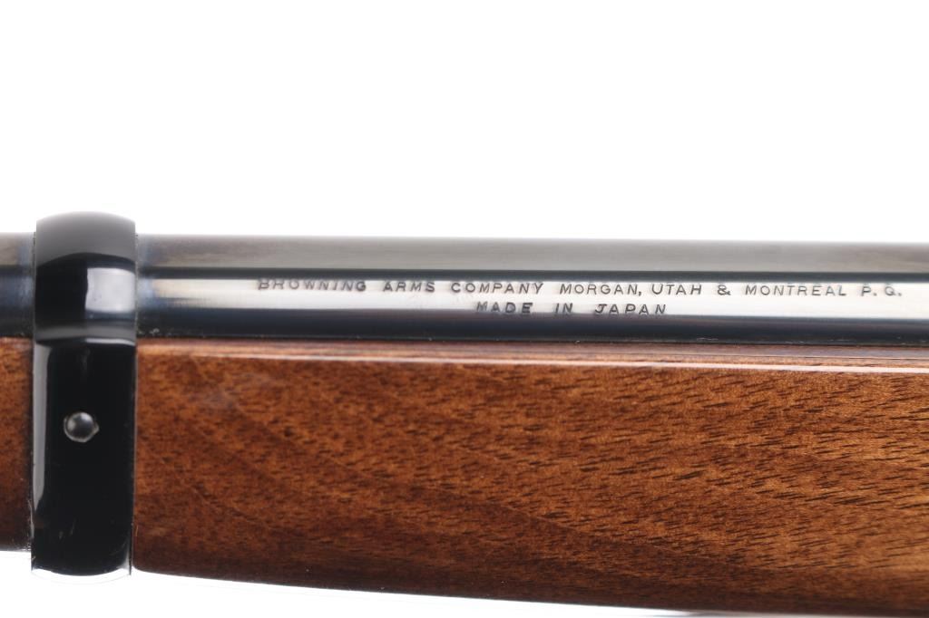 Lever-Action rifle. 15+1 capacity. Manufactured in Japan by Miroku for Browning , Morgan, Utah, Montreal P.Q. 20" barrel with post/bead front, and dovetailed, adjustable 'white triangle' folding rear sights. Full length tube magazine. Machined steel receiver. High polish blue. Gloss finished, checkered walnut stock, and forearm. Black plastic Browning buttplate. Smooth trigger. Receiver grooved for optics. the trigger stays with the triggerguard/lever when worked. Bore is excellent bright. Action is smooth/tight. The blue finish is about 99%. Wood is excellent. NRA Condition-Excellent, Like New. Modern firearm.