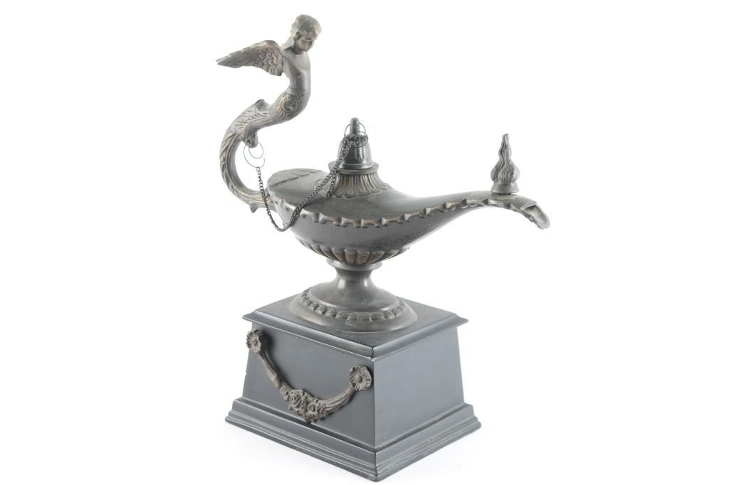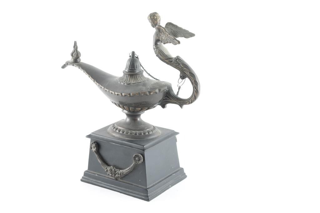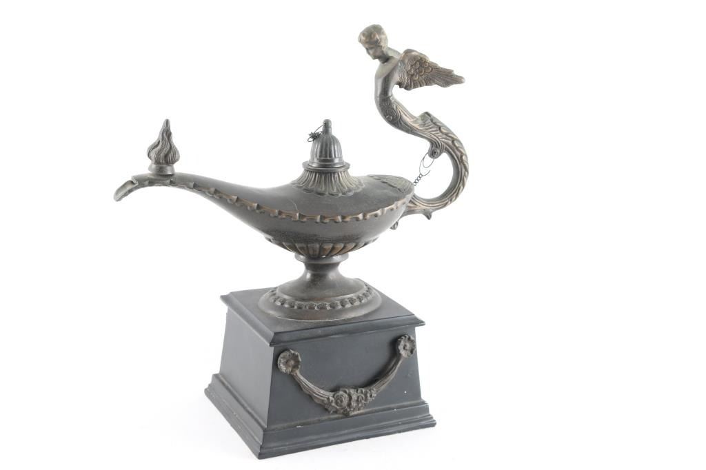 Stylized incense burner probably late Victorian to 20th century, th floral design and angel handle. Approximately 13" tall x 13" wide x 5" deep..