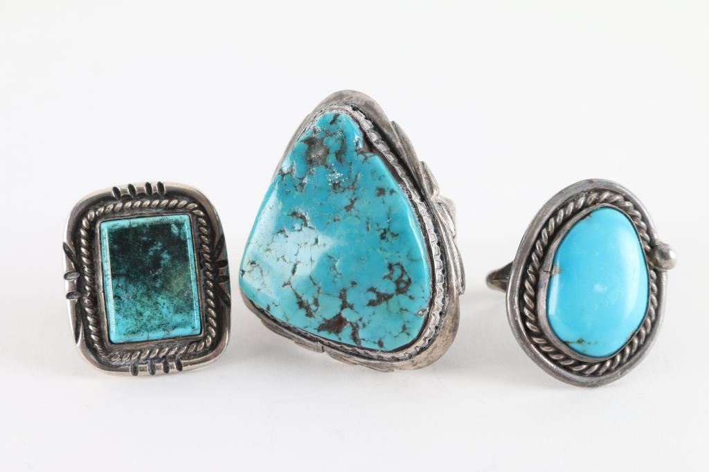 Lot 828 Lot of 3 Navajo Turquoise Rings
