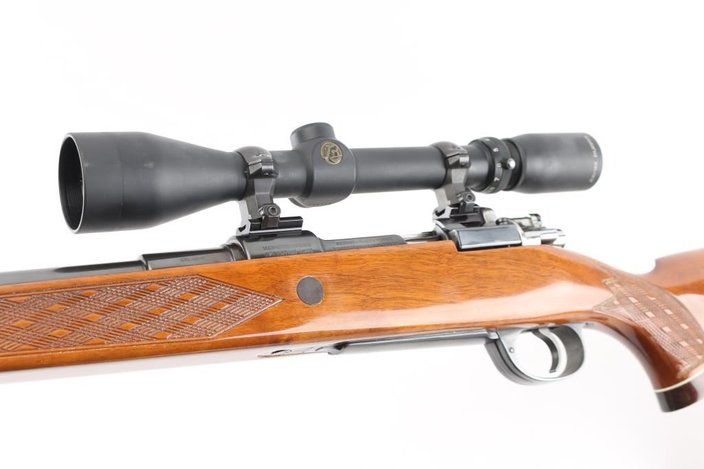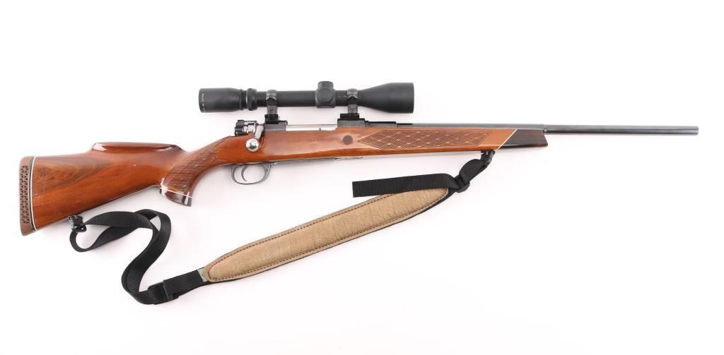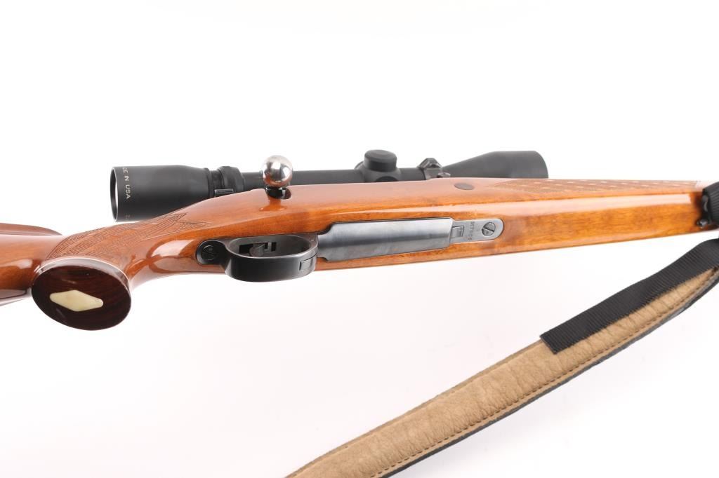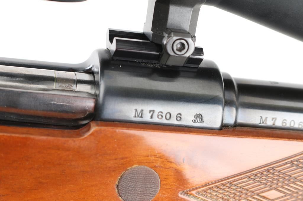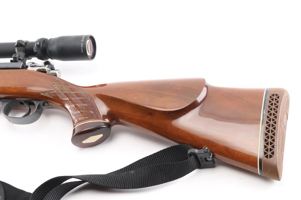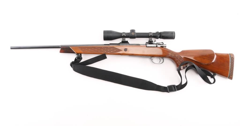 Sporterized military bolt action rifle, now scoped and with a Monte Carlo type stock. Features blued finish, polished bare metal bolt, original 7.65mm stepped barrel trimmed to 22" and military sights removed, two position low swing safety fitted to bolt shroud, aftermarket trigger, hinged floorplate, two piece Weaver rings, US made Burris Signature 3-9x scope with duplex reticle. Stock features contrasting wood tip & grip cap with white line spacers, right hand cheek piece, skip line checkering, ventilated rubber recoil pad, high comb, sling studs. Bore is good or better condition, generally bright with slight erosion to sharp edges of rifling. Retains 90% high polish re-blue. Stock is very good condition. Scope has bright view. Barrel and triggerguard numbers match the receiver. Includes black nylon sling with leather pad. Condition is NRA Very Good as modified *** C&R Firearm ***